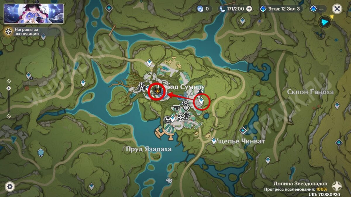 Переместитесь к телепорту у точки репутации Сумеру и направляйтесь Дом даэны, расположенный в академии.