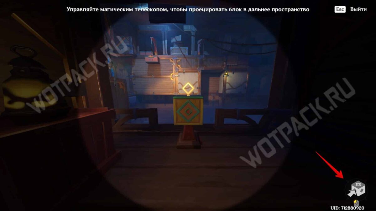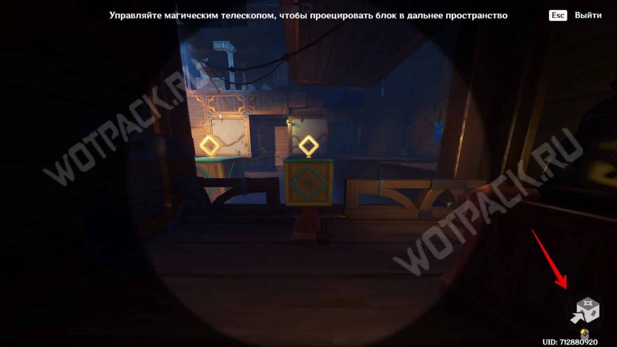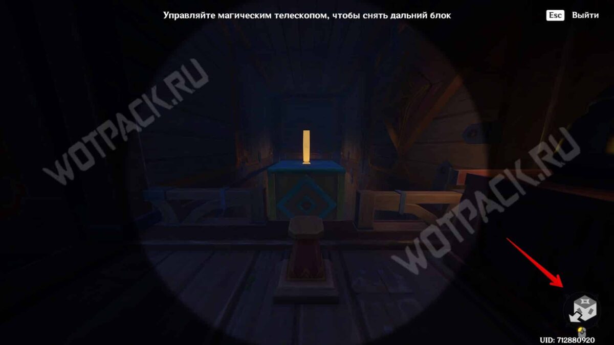 - На ЛКМ управляйте магическим телескопом, чтобы снять дальний блок.
