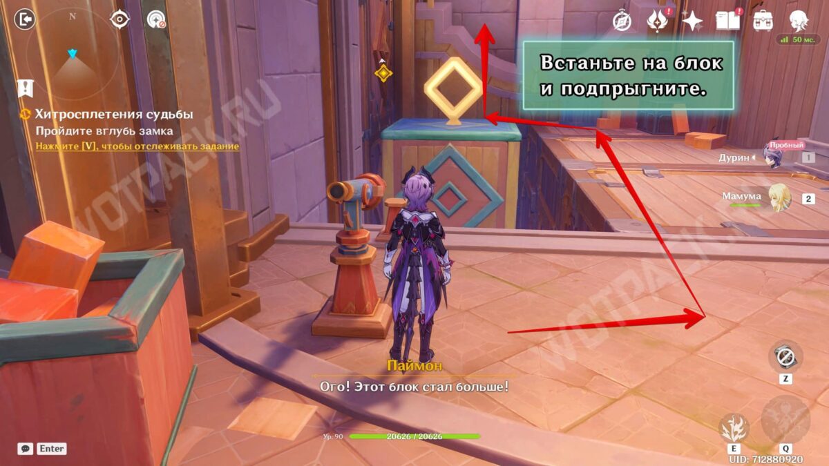- Пройдите вглубь замка, встав на гигантский блок из Симуланки и подпрыгнув на нём.