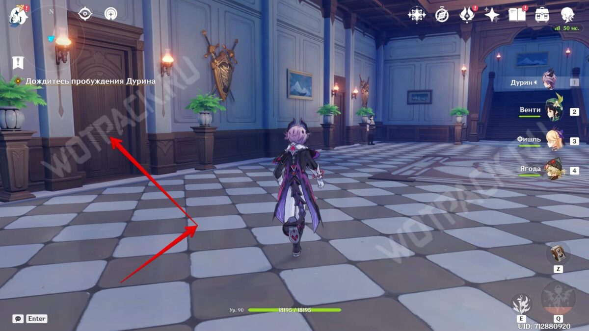 Вернитесь в Мондштадт вместе с Дурином туда же, где группа играла в Священный призыв семерых. По неизвестным причинам Бездна начнёт вырываться из мальчика, из-за чего он потеряет сознание.