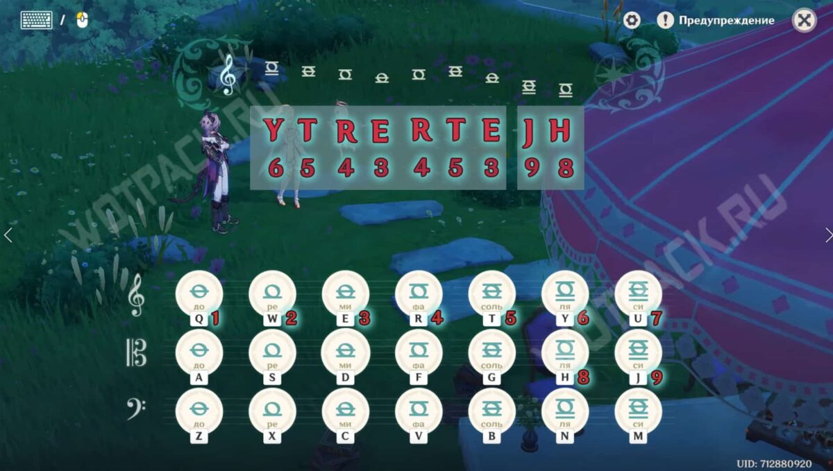- Y-T-R-E-R-T-E на верхнем ряду (ля-соль-фа-ми-фа-соль-ми) и J-H на среднем (си-ля).