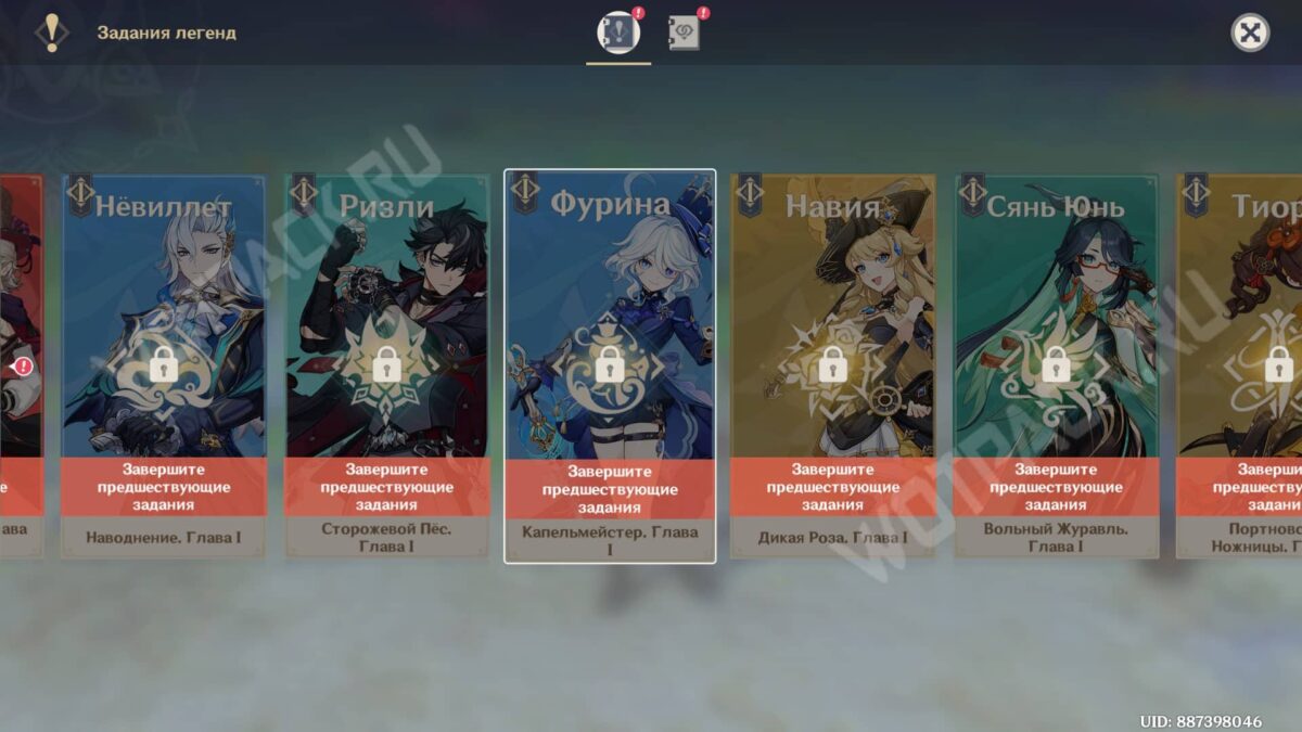 Для открытия задания легенд Фурины в соответствующем меню именных квестов необходимо предварительно выполнить несколько обязательных требований: