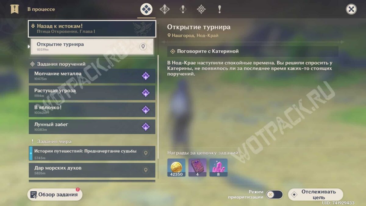 Посетите Нашгород и поговорите с Катериной, чтобы узнать больше о доступных поручениях. Секретарь расскажет о проходящем турнире «Состязание посланников духов», который регулярно проводится Анклавом Морозной Луны. Чтобы узнать о нем больше, придется обратиться к особому советнику Гильдии, специализирующемуся на животных.