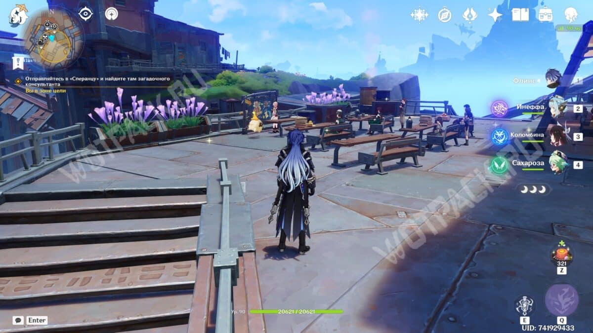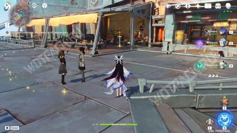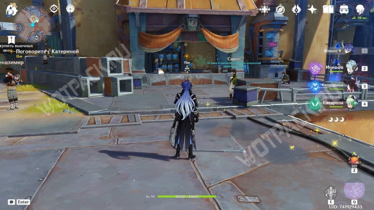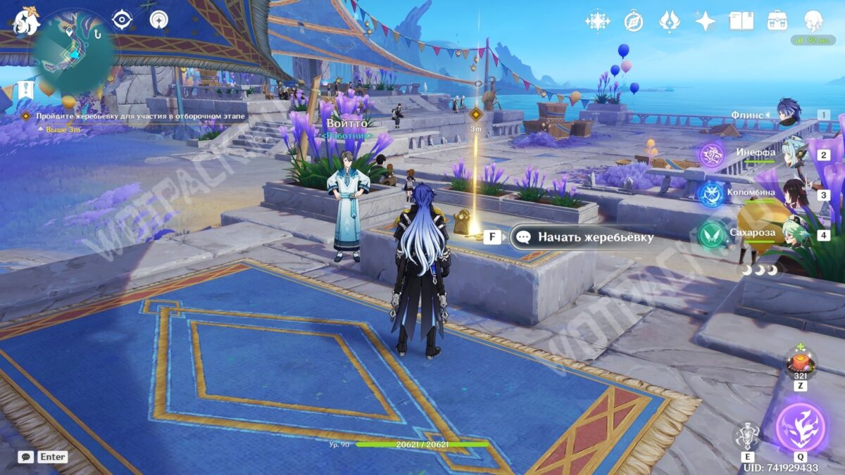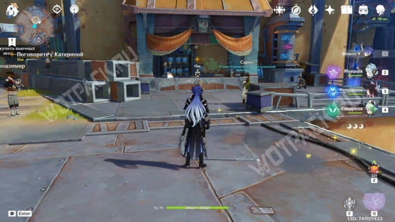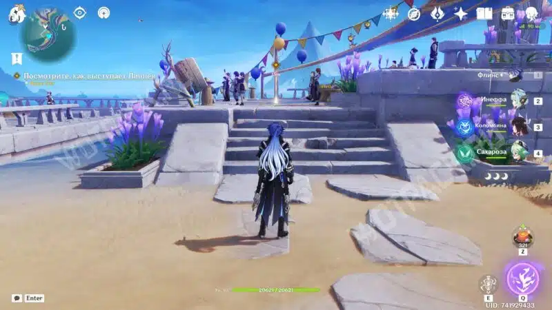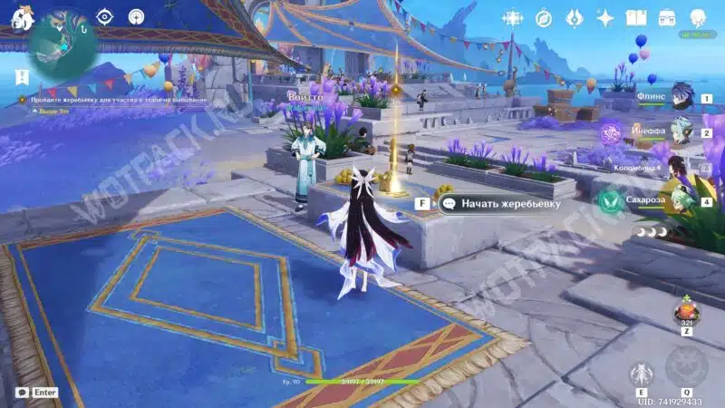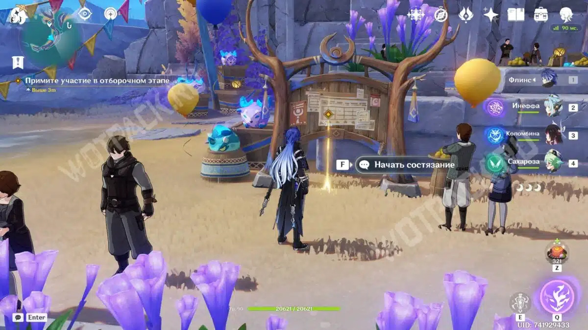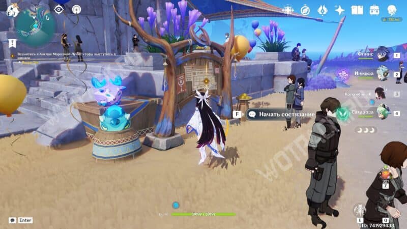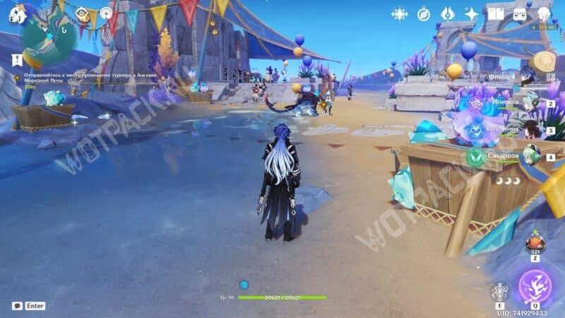 Вместе с новой знакомой отправляйтесь к месту проведения турнира в Анклаве Морозной Луны. На месте встретитесь с другими участниками состязаний — серфингисткой Муалани и королем оникабуто Итто. Поговорите с друзьями и подайте заявку на участие, обратившись к служителю Войтто.