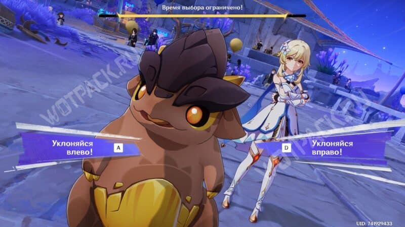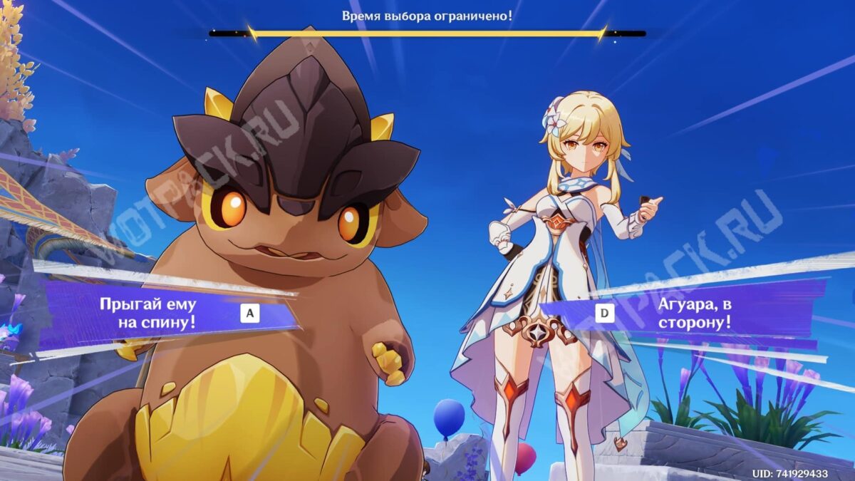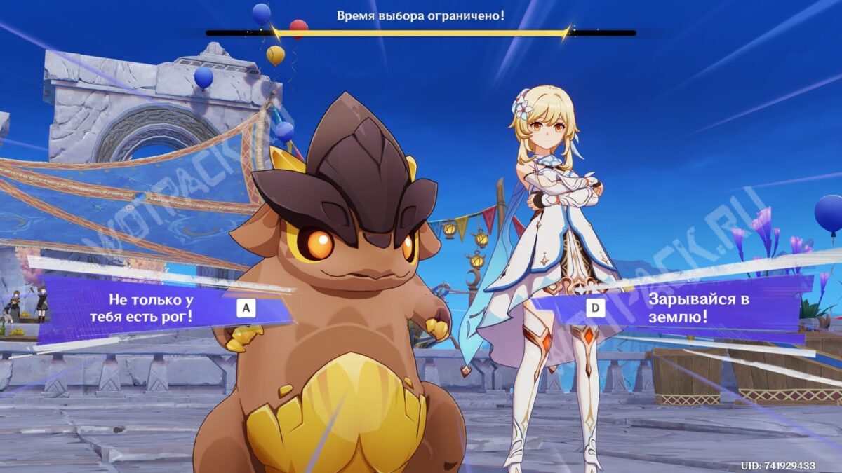 Когда очки здоровья Алого воина достигнуть половины шкалы, запустится особая сцена, в которой Итто призовет на поле второго бойца. В ответ на это можно выбрать следующее: