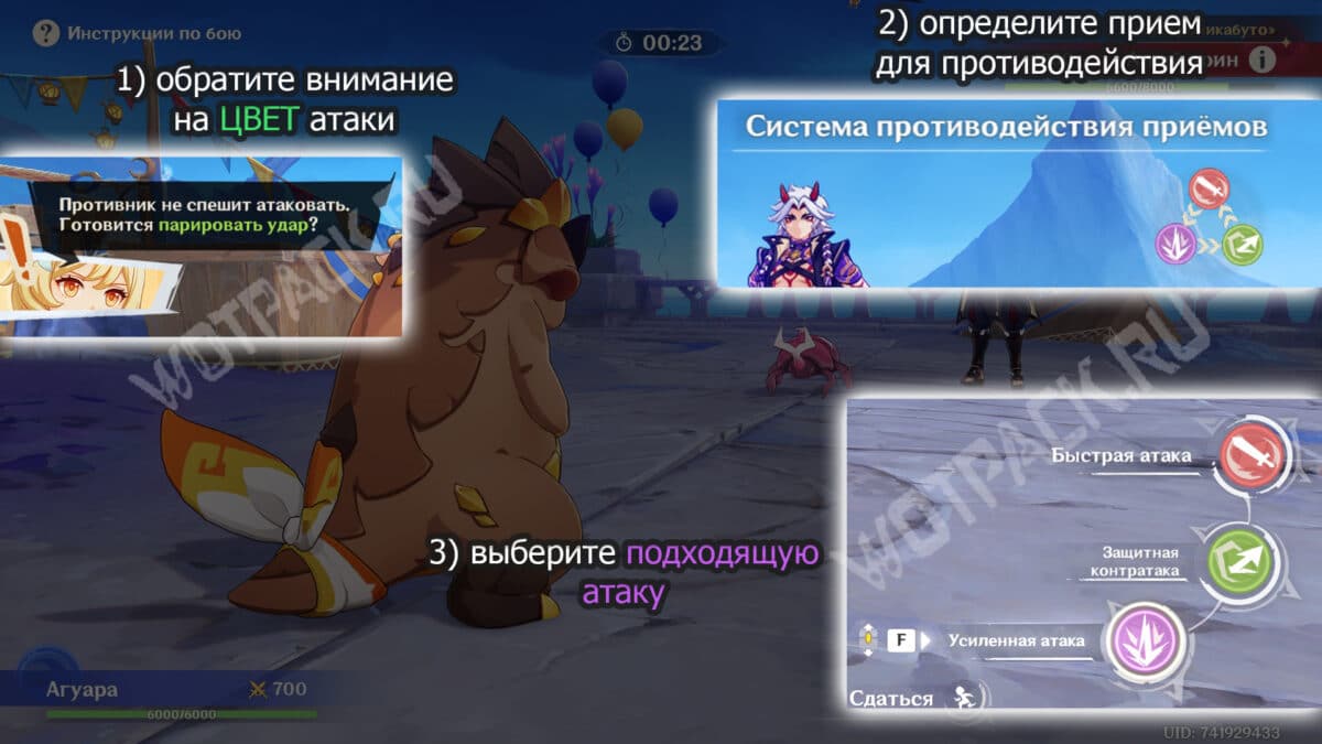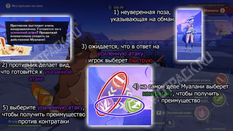 Проще говоря, в случае обмана выбирайте атаку именно того типа и цвета, который указан в подсказке.