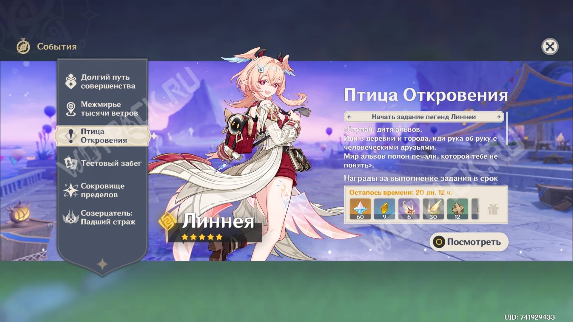 Завершив задание легенд Линнеи «Птица Откровения. Глава 1», получите:
