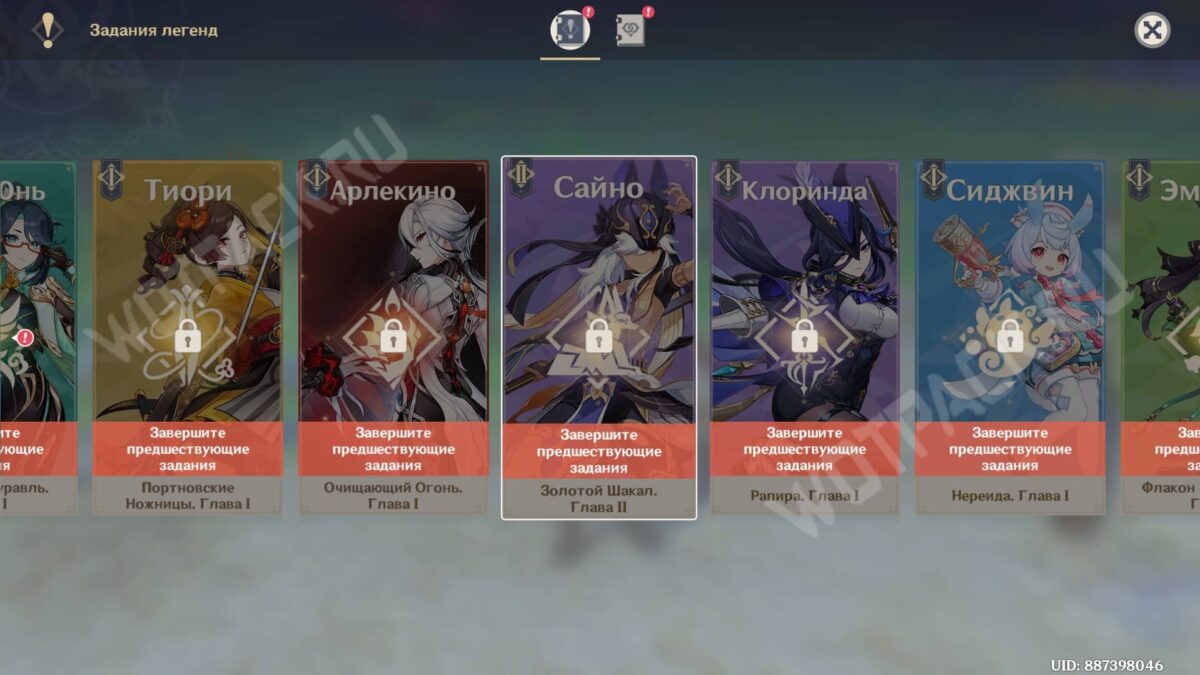 Для открытия второй главы задания легенд Сайно выполните ряд обязательных требований: