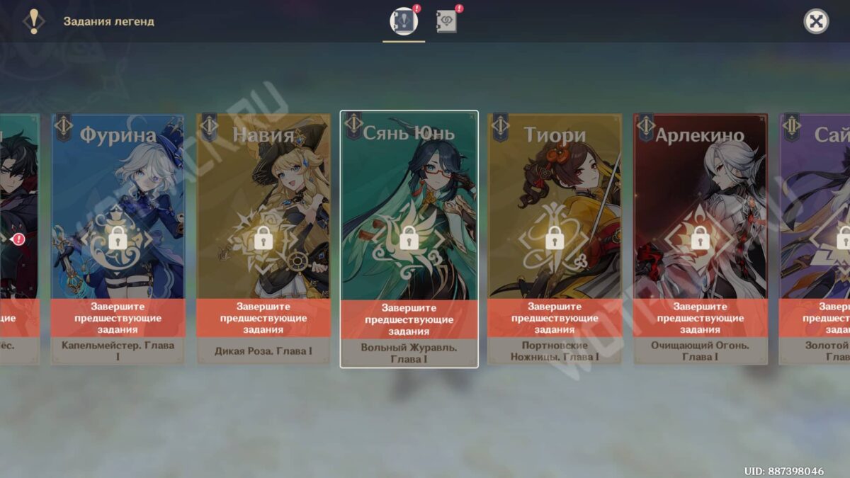 Для открытия задания легенд Сянь Юнь требуется выполнить ряд обязательных условий: