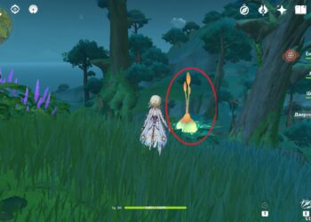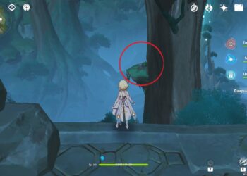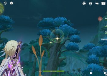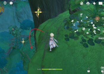 Чтобы добраться до третьего символа, воспользуйтесь самой южной точкой телепорта на локации. Раазвернувшись в сторону отметки увидите бутон соцветия, активируемый Дендро стихией. При оживлении цветок выпускает дополнительные четырехлистные символы.
