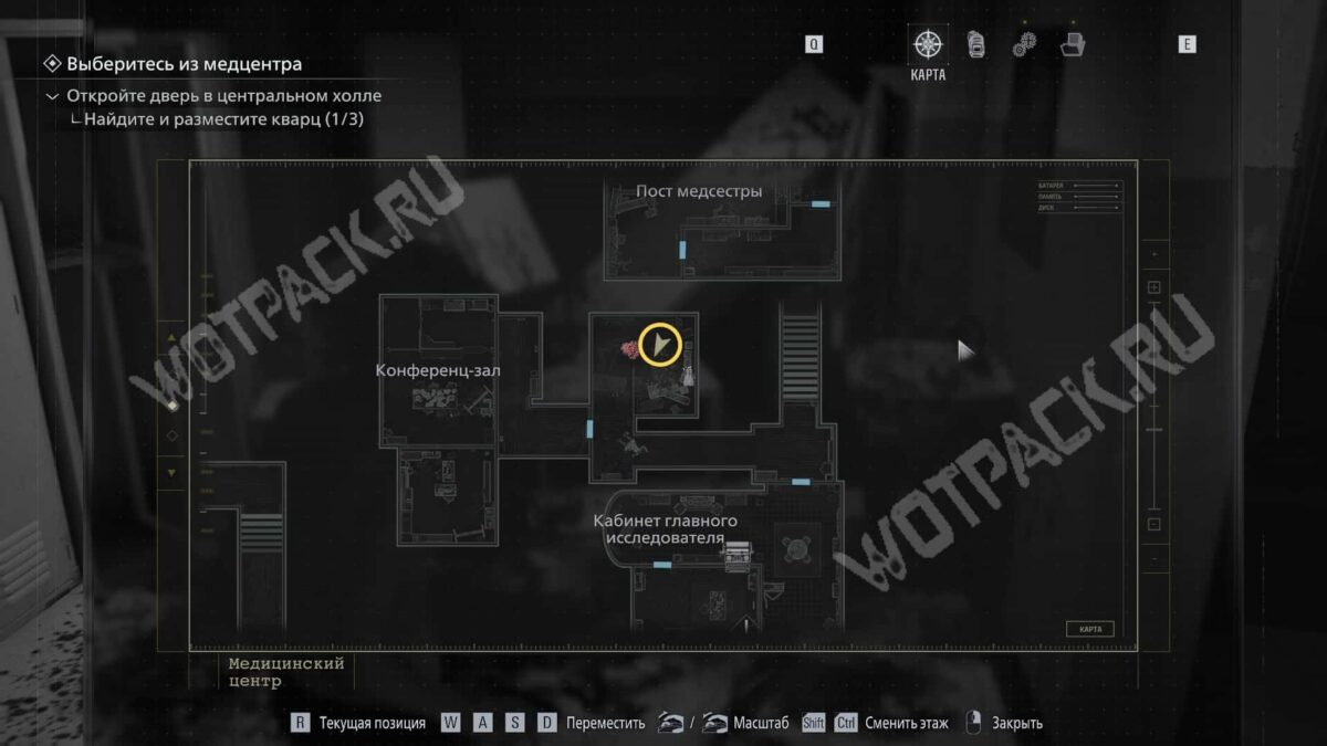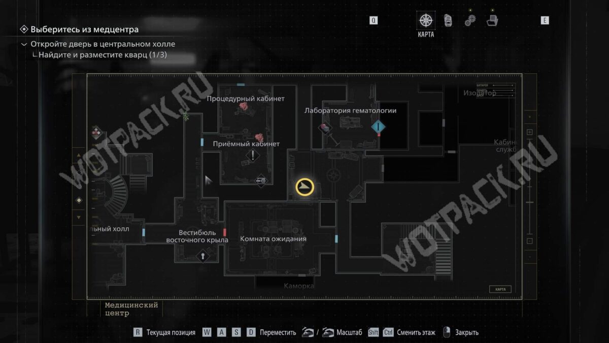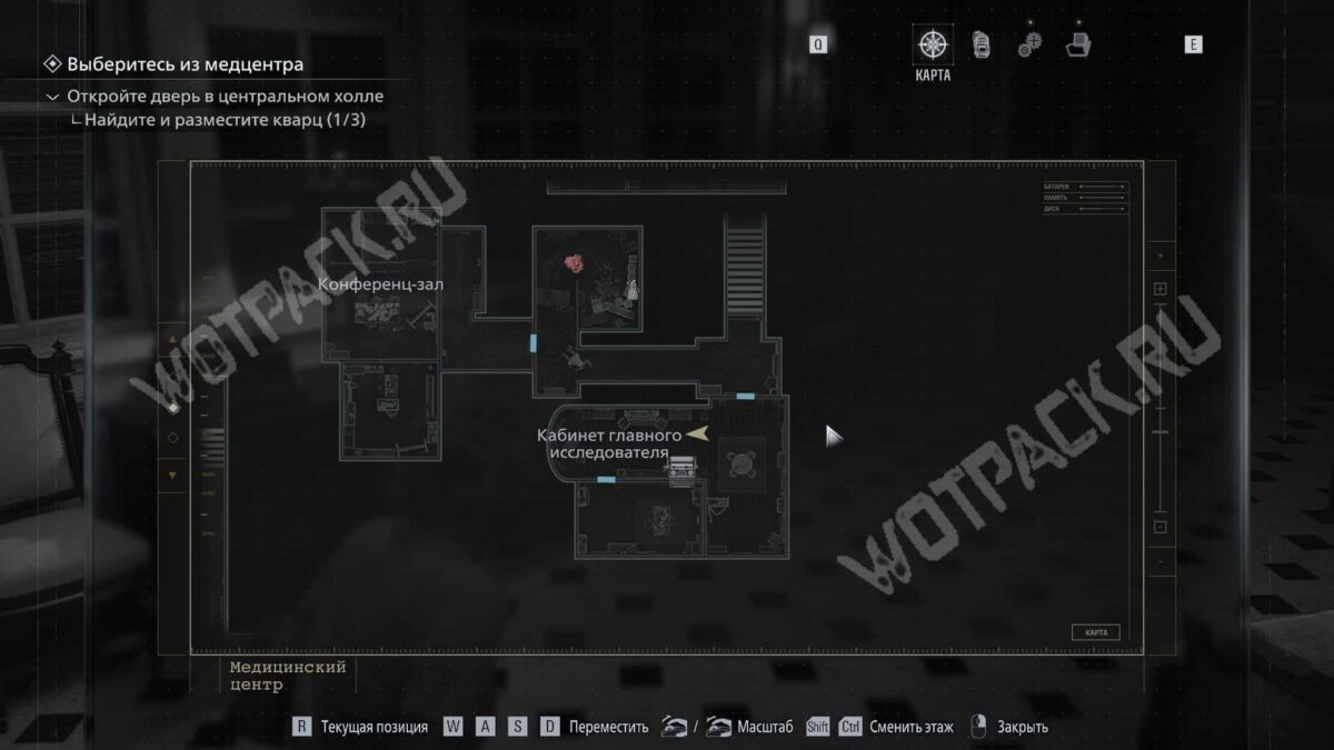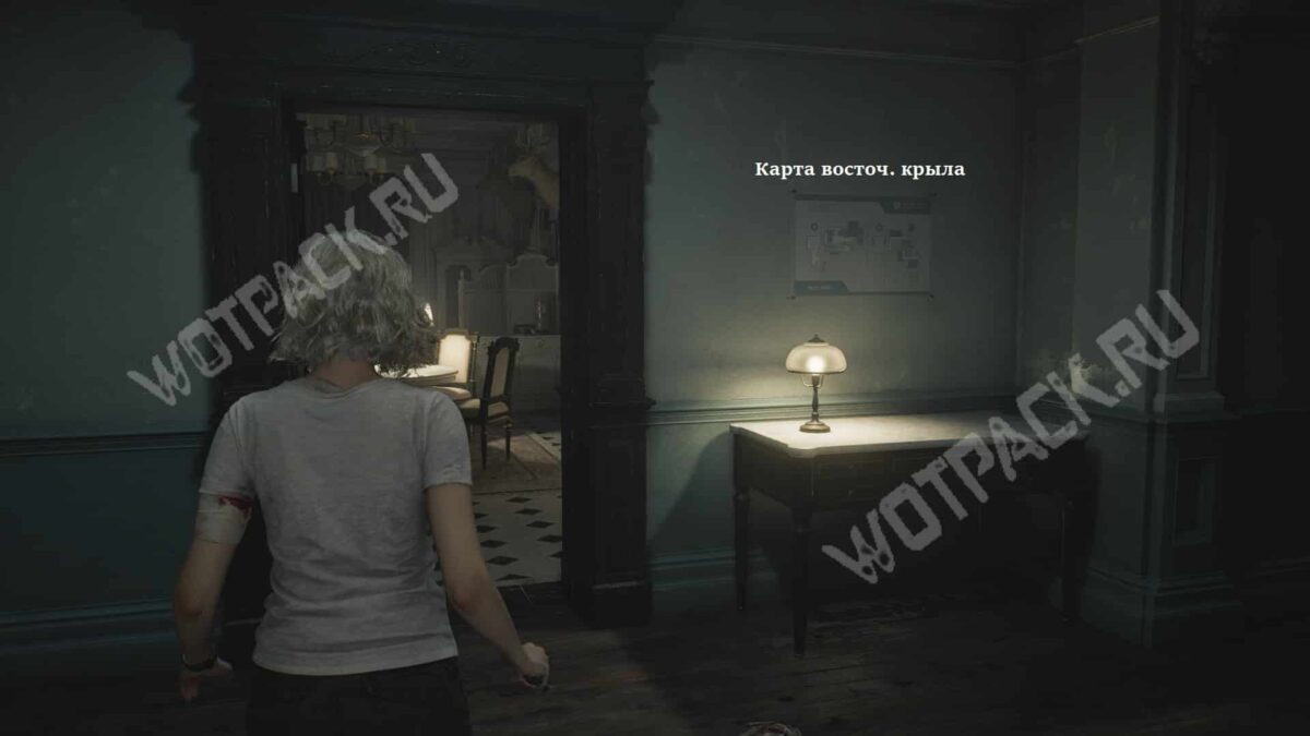 Получив доступ к восточному крылу медцентра, поднимитесь на второй этаж, осмотрите карту больничных палат и пройдите внутрь помещения напротив.