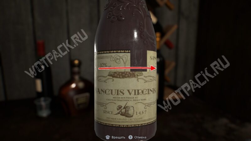 Вращайте предмет с помощью мышки или левого стика и разверните бутылку этикеткой к себе. Когда появится возможность взаимодействия, нажмите кнопку.