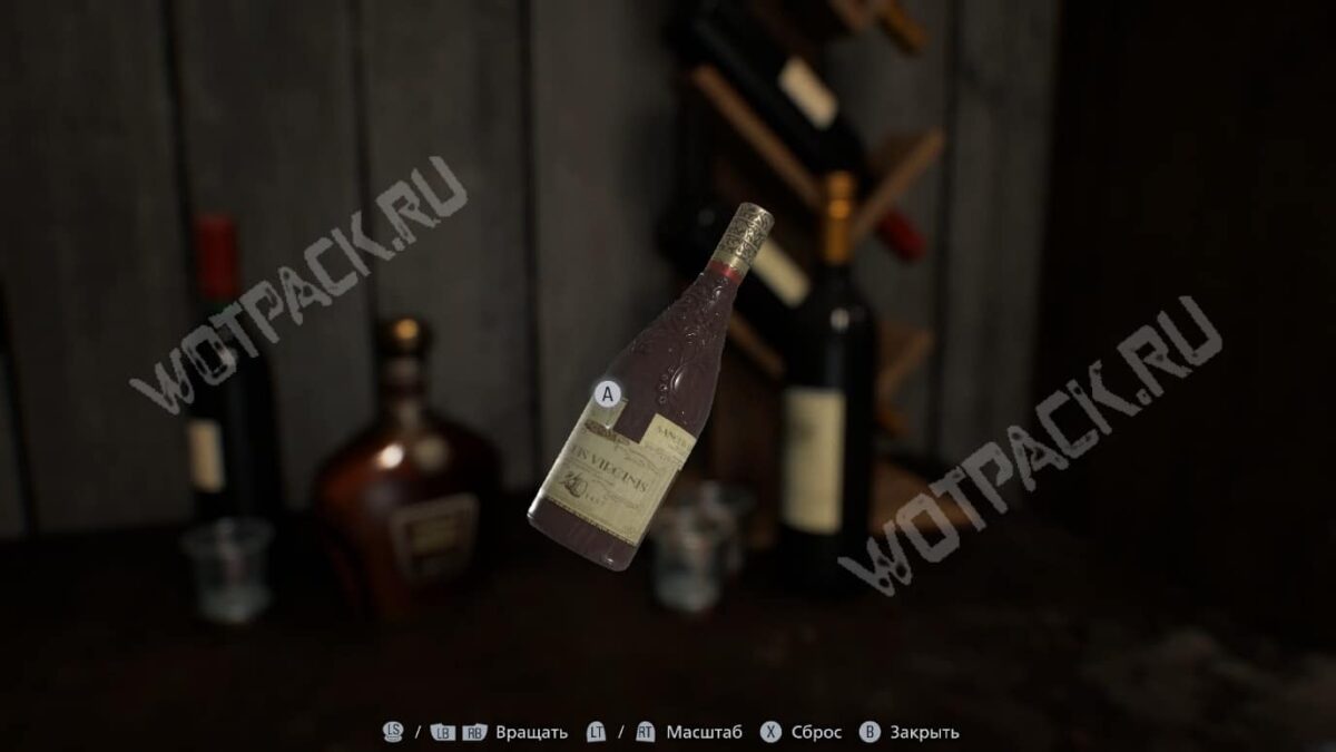 Вращайте предмет с помощью мышки или левого стика и разверните бутылку этикеткой к себе. Когда появится возможность взаимодействия, нажмите кнопку.