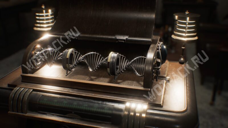 Зайдя в зал, сразу осмотрите кафедру с двумя светильниками сверху. С панелью в верхней части можно взаимодействовать — из конструкции выдвинется модель молекулы ДНК с разрывом посередине и пазами для установки недостающей части.