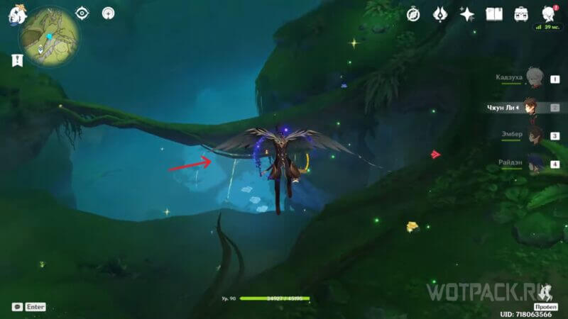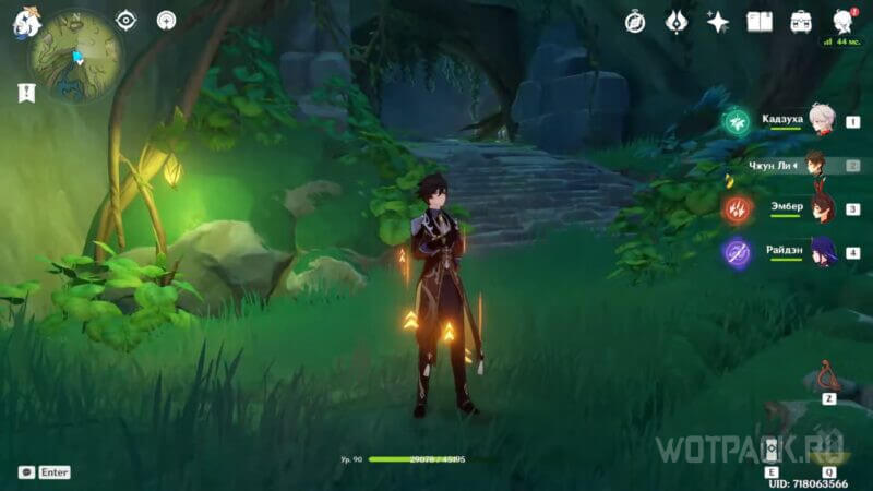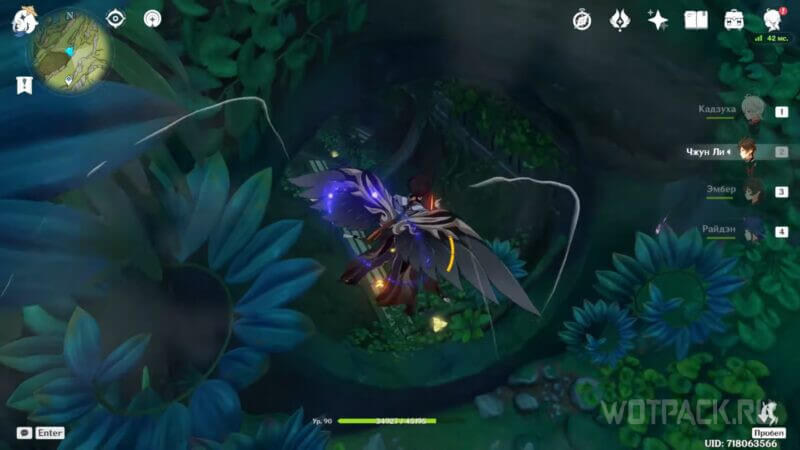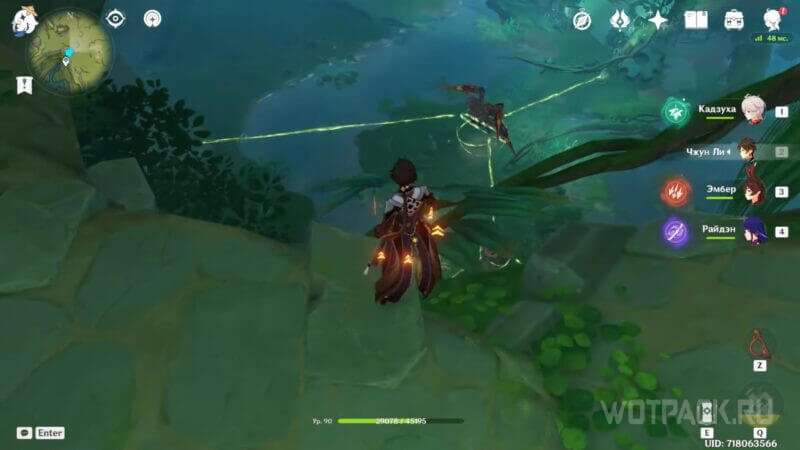 - Возьмите в отряд Крио персонажа (например, Кэйю). Данное место находится в небольшом водоеме, что позволяет замораживать противников.
