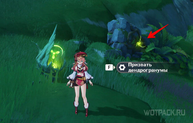 Теперь можно собрать Дендрокул. Он находится под Дендро корягой, которая автоматически поднимется сразу после уничтожения зоны Увядания.