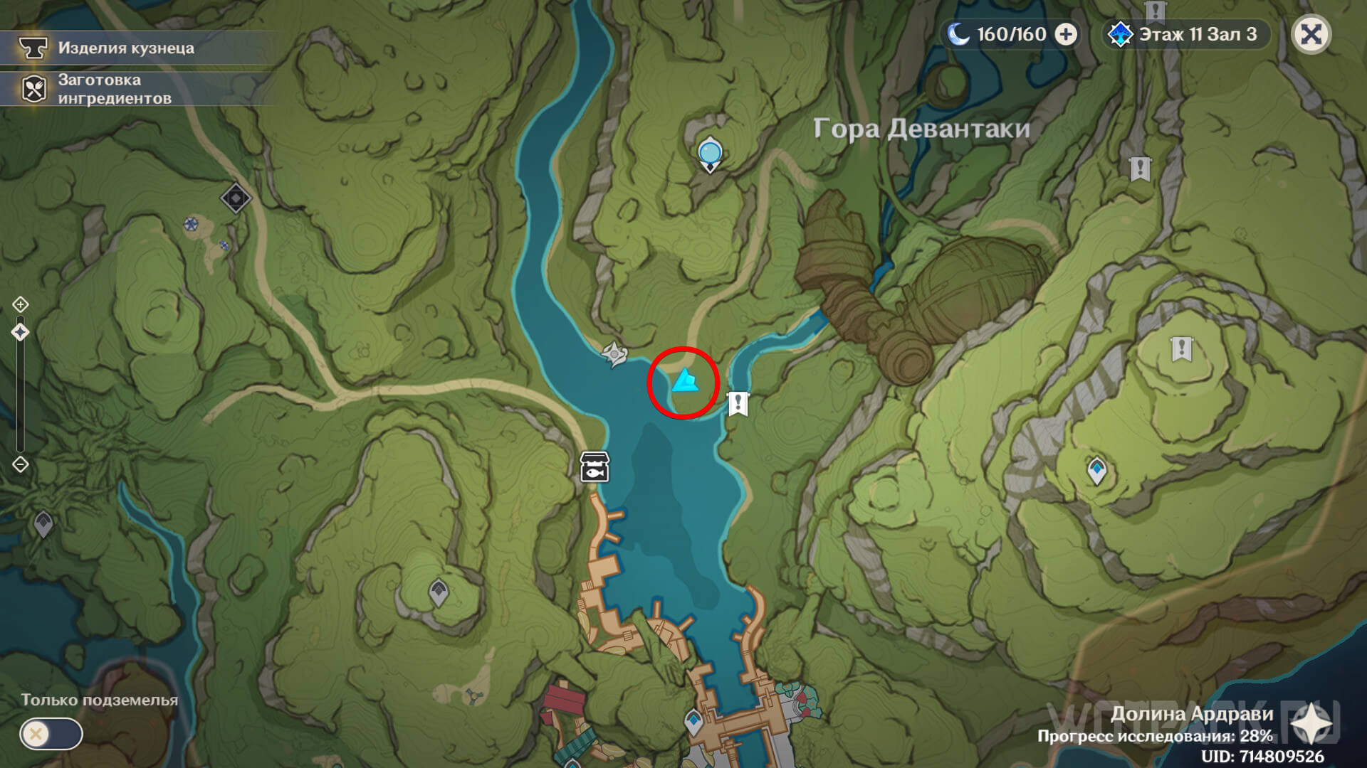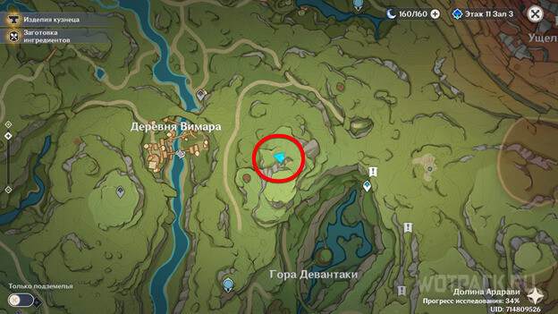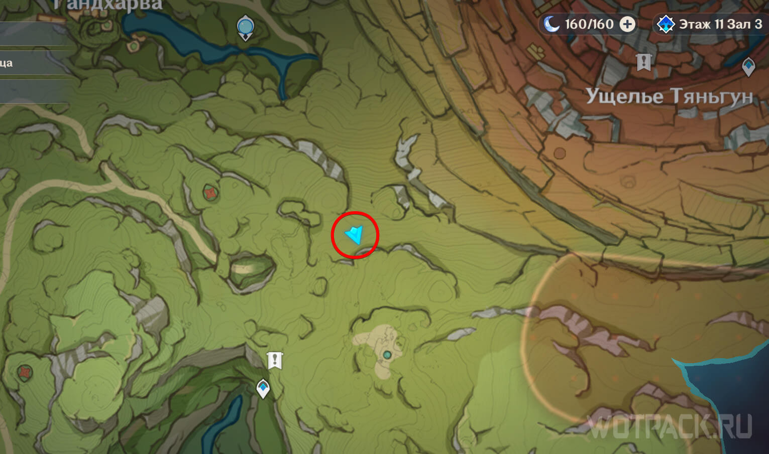 В пещере из предыдущей загадки найдите Дендро корягу. Всего их там три, под одной из них лежит груда камней с 10000 моры.