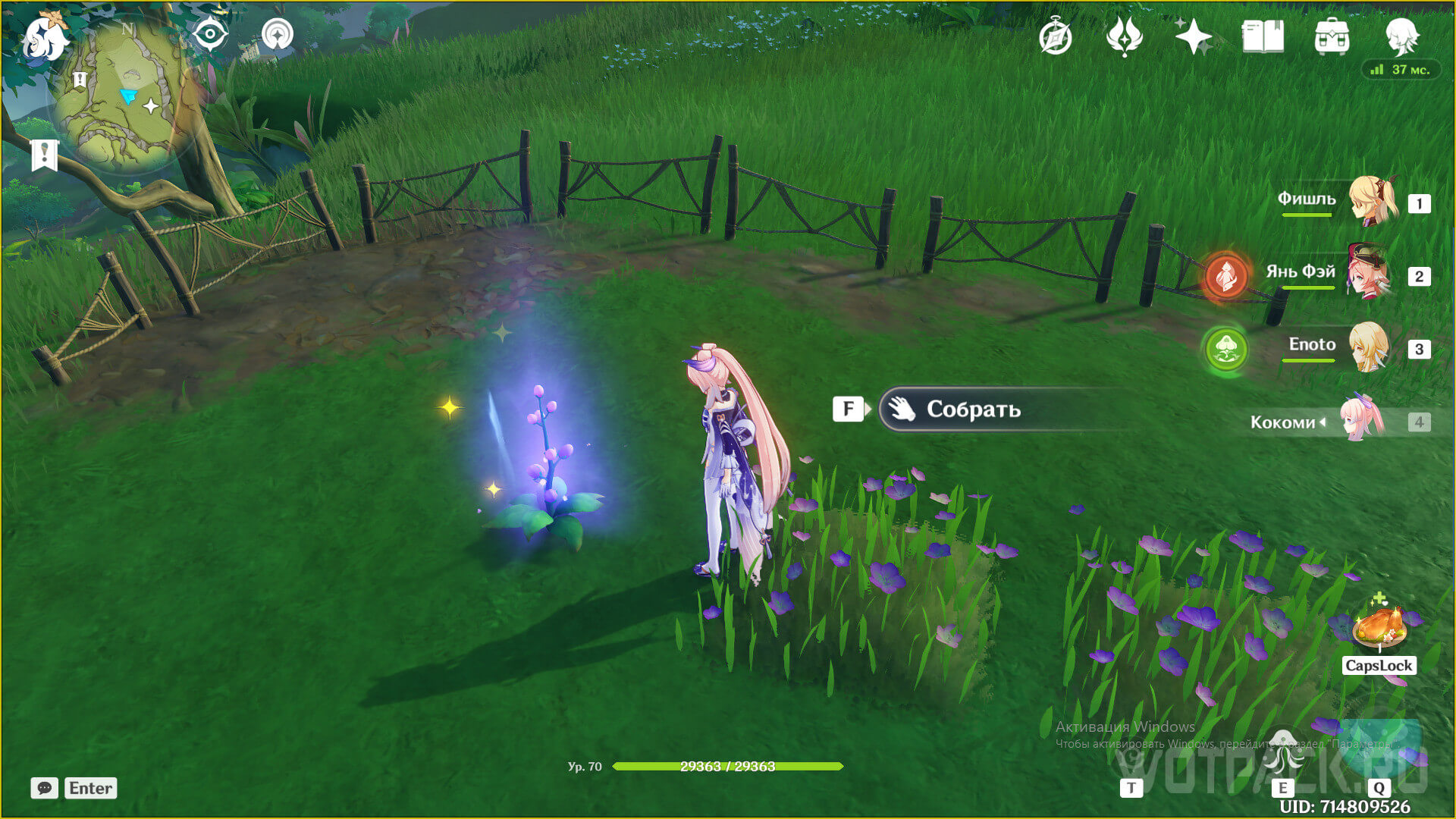 Если посмотреть на четырехлистный символ на некотором расстоянии, над ним загорится небольшой круглый знак в виде закрученной веточки. Нажмите «T» чтобы подлететь к цветку, затем наведите камеру на следующий и снова используйте «T».