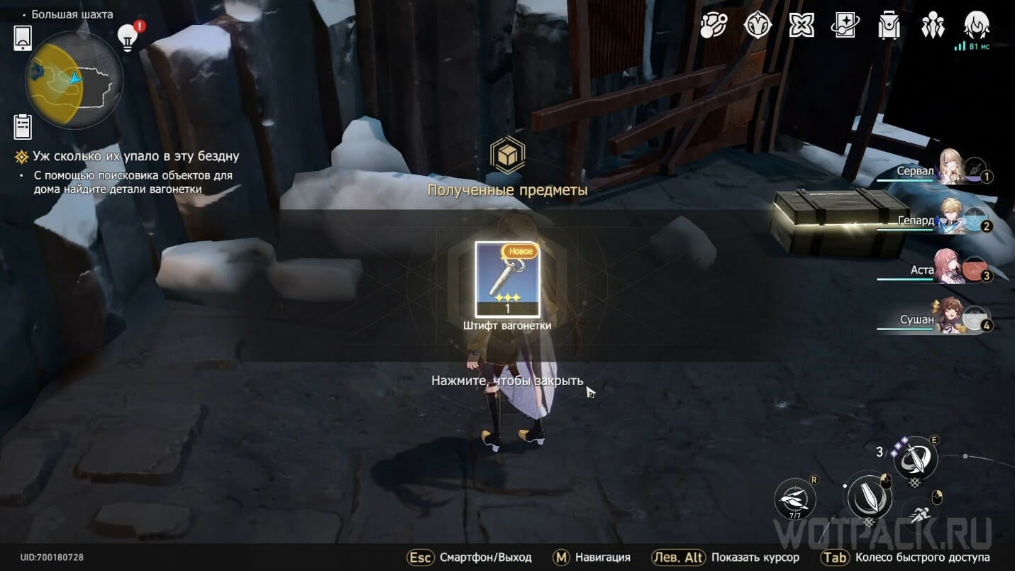 Разместите индикаторы так, чтобы каждый следующий либо создавал точку пересечения, либо находился чуть дальше от конца линии предыдущего. Таким образом, Штифт вагонетки обнаружите слева от сундука возле стены. Осмотрите его, чтобы предмет засчитало.