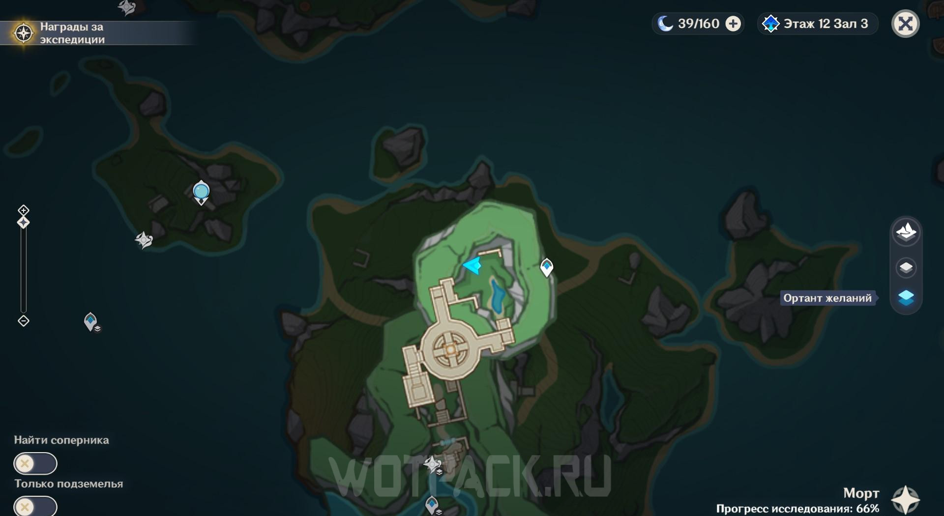 В области форта можно обнаружить один драгоценный сундук, который расположен в руинах пещеры в дикой природе. Попасть к нему можно во время одной из частей квеста «Метеоритное копье». Отправляйтесь от подземного телепорта прямо в руины и у зеркала спуститесь вниз на платформе, чтобы попасть в Ортант желаний.