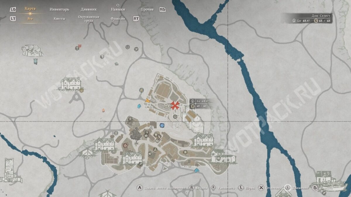 Поднимитесь на второй этаж и войдите в холл, ведущий к покоям маркиза. Направляющая линия резко свернёт влево, в кабинет алхимика, откуда в квесте «Таинственный ключ» открылся проход в Бездну.