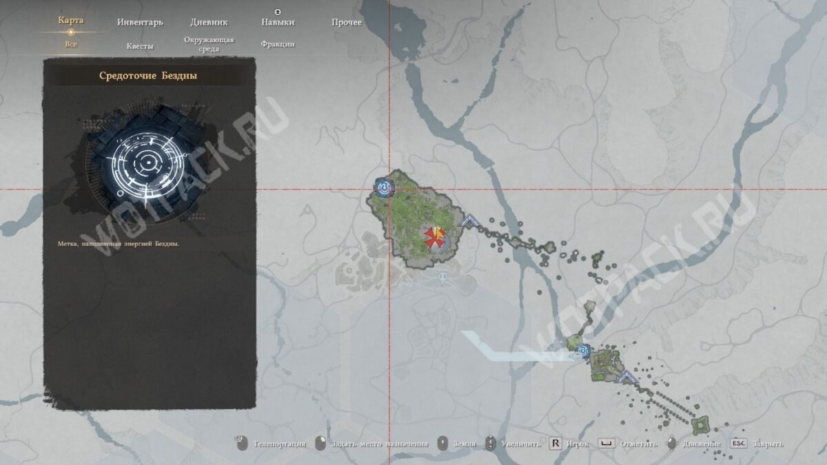 Если из-за бага кнопка взаимодействия с вратами не появляется, можете переместиться на Средоточие Бездны над Эрнандом через карту. Для этого переключитесь на слой Бездны с помощью средней кнопки мыши или нажатия на правый стик на геймпаде.