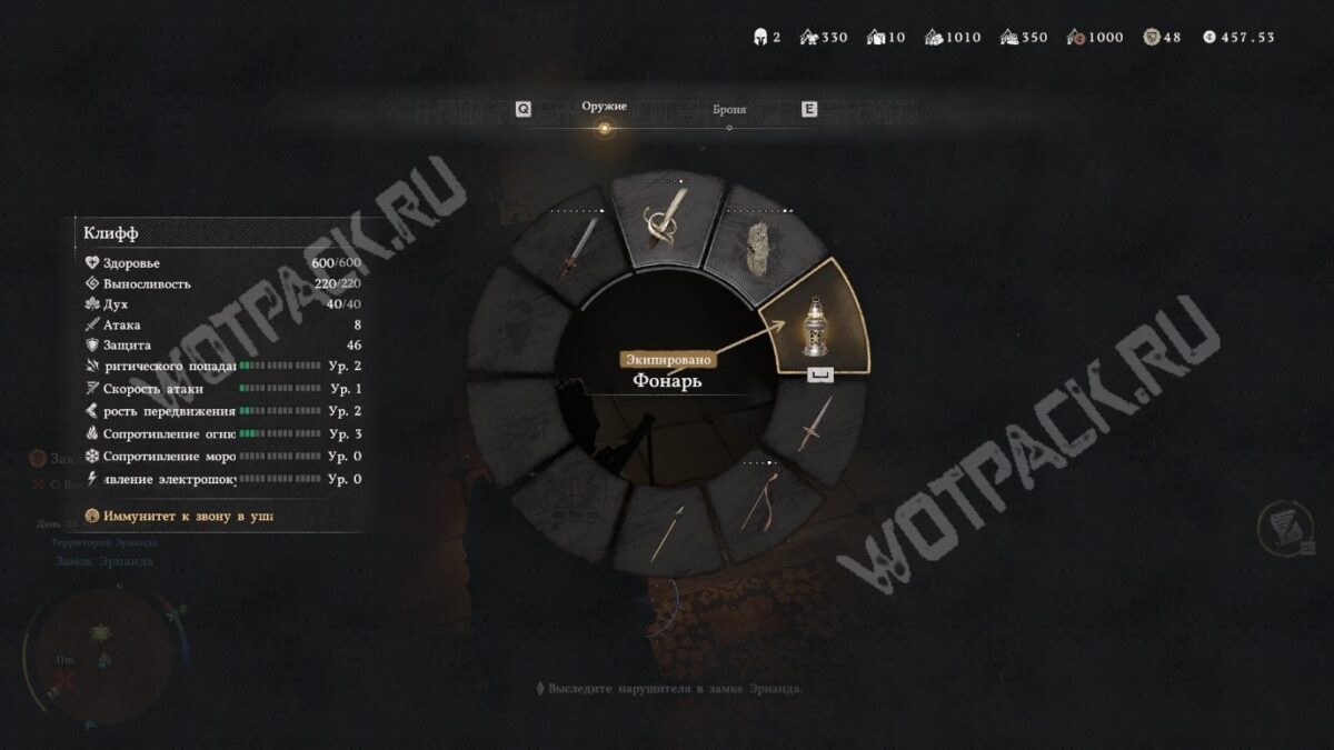 - Откройте радиальное меню (клавиша «F2» на клавиатуре или «Вправо» на крестовине геймпада), наведите селектор на фонарь и отпустите кнопку выбора.