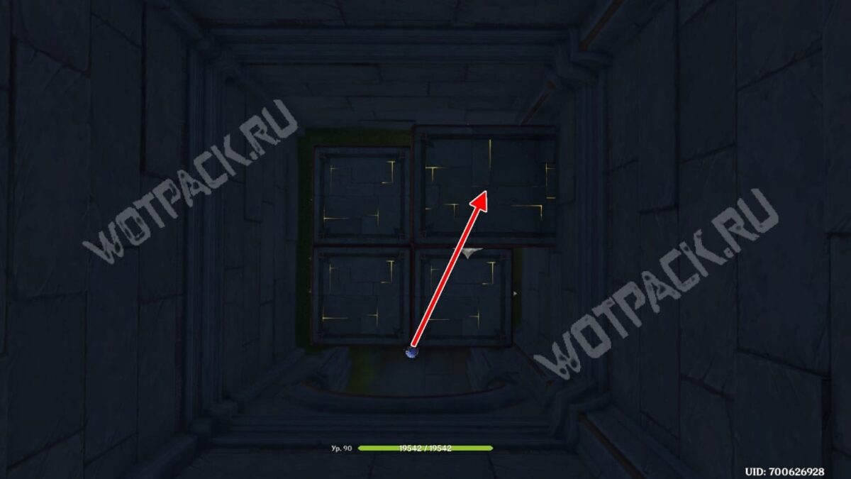 Закончив бой, получите призовые сундуки и трофей за прохождение. Путь обратно перекрыт кубами в шахте, а чтобы выбраться из подземелья, можно телепортироваться или использовать гарпастум под потолком.