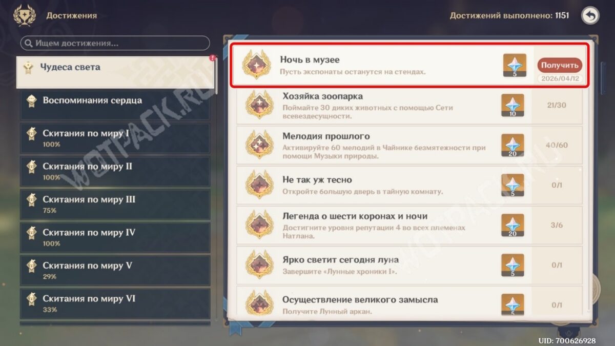 Проход через скрытое подземелье позволит выполнить условие «Пусть экспонаты останутся на стендах», что разблокирует ачивку «Ночь в музее» из раздела «Чудеса света». Награда: 5 камней истока.