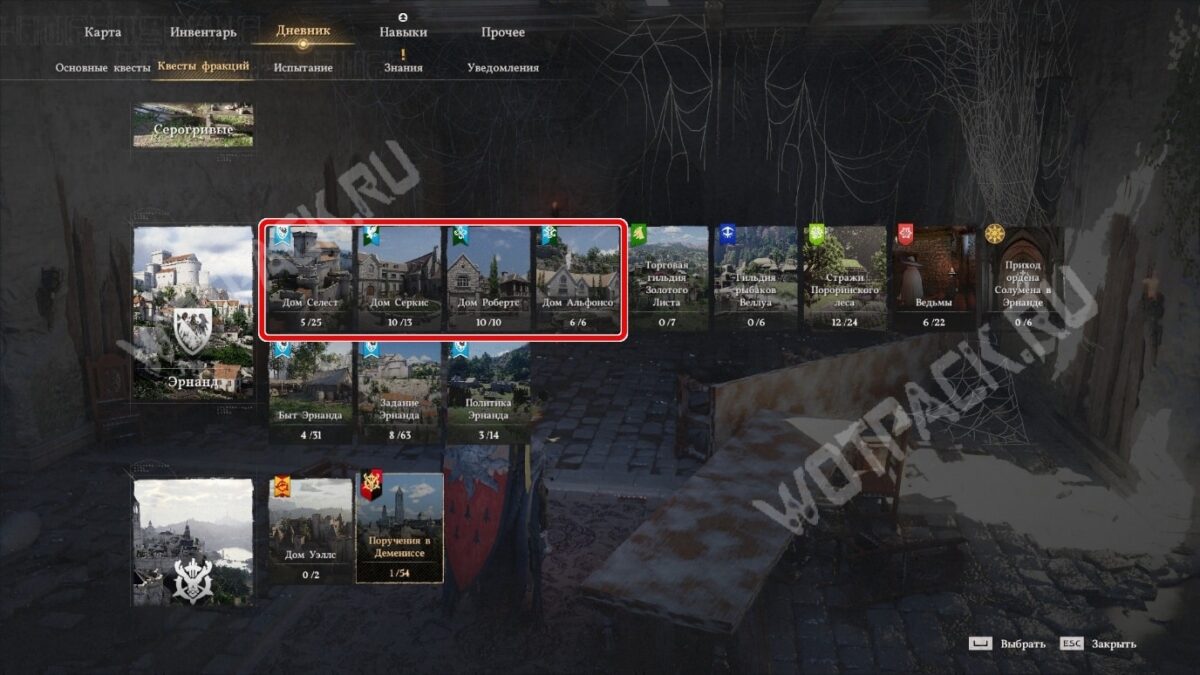 - Уничтожить паучью королеву и освободить замок Арбория от врагов по квесту дома Селест «Королева Шелковой цитадели».
