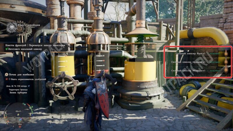 Выполнение двух квестов из серии «Заброшенная фабрика» вернёт к жизни старый замок Арбория и принесёт полезные эликсиры: