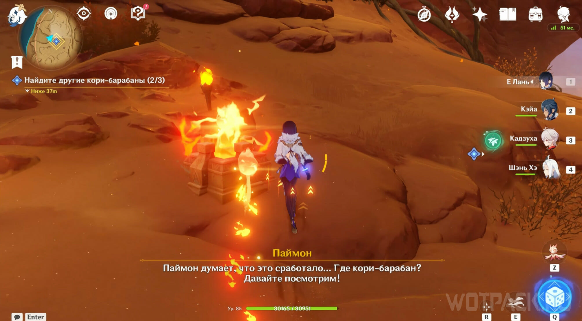 Где находится кори-барабан с испытанием чистого пламени в Genshin Impact