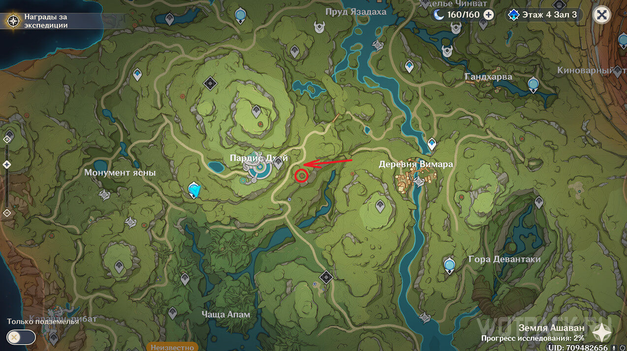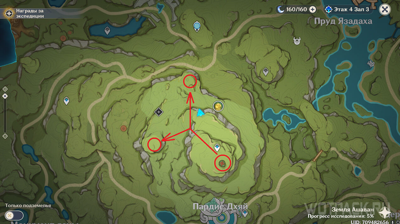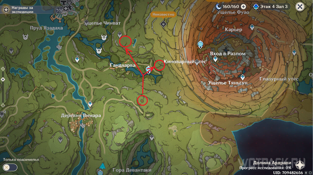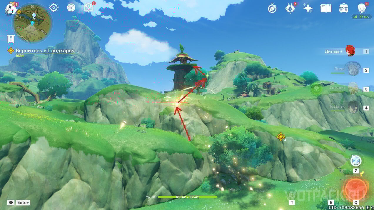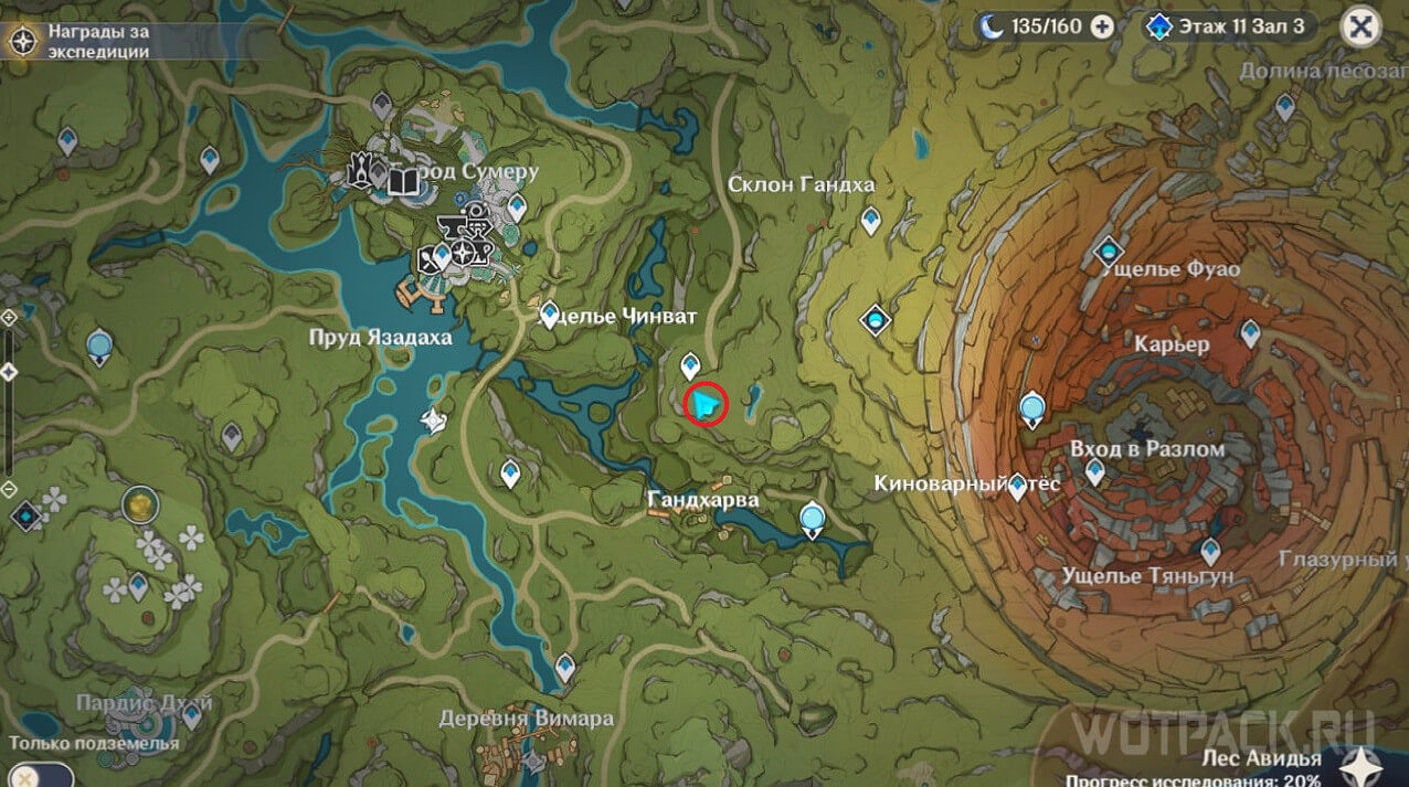 Первая точка расположена на юго-востоке от Гандархвы, на горе рядом с тропинкой. Добраться до нее крайне просто: двигайтесь от Статуи Архонта по четырехлистным символам.