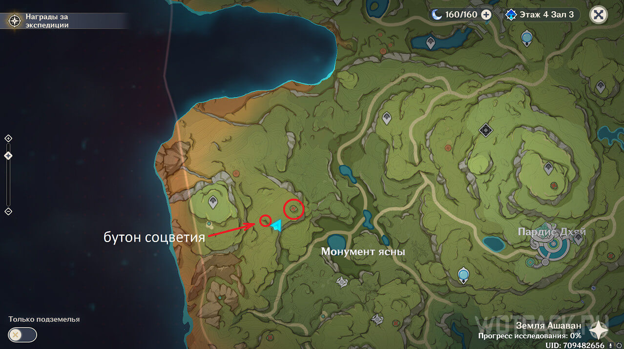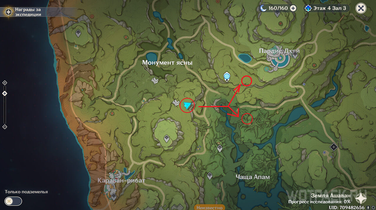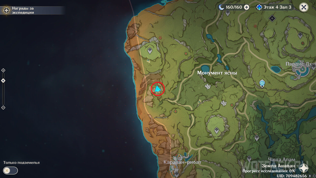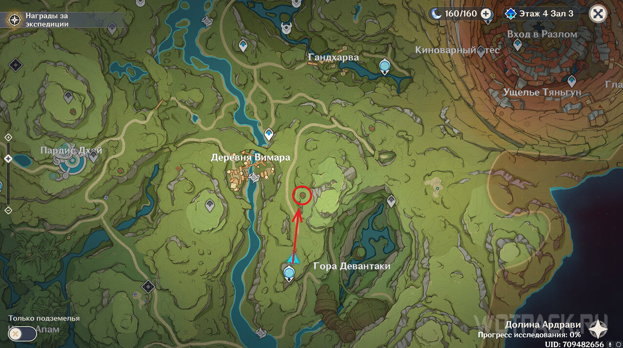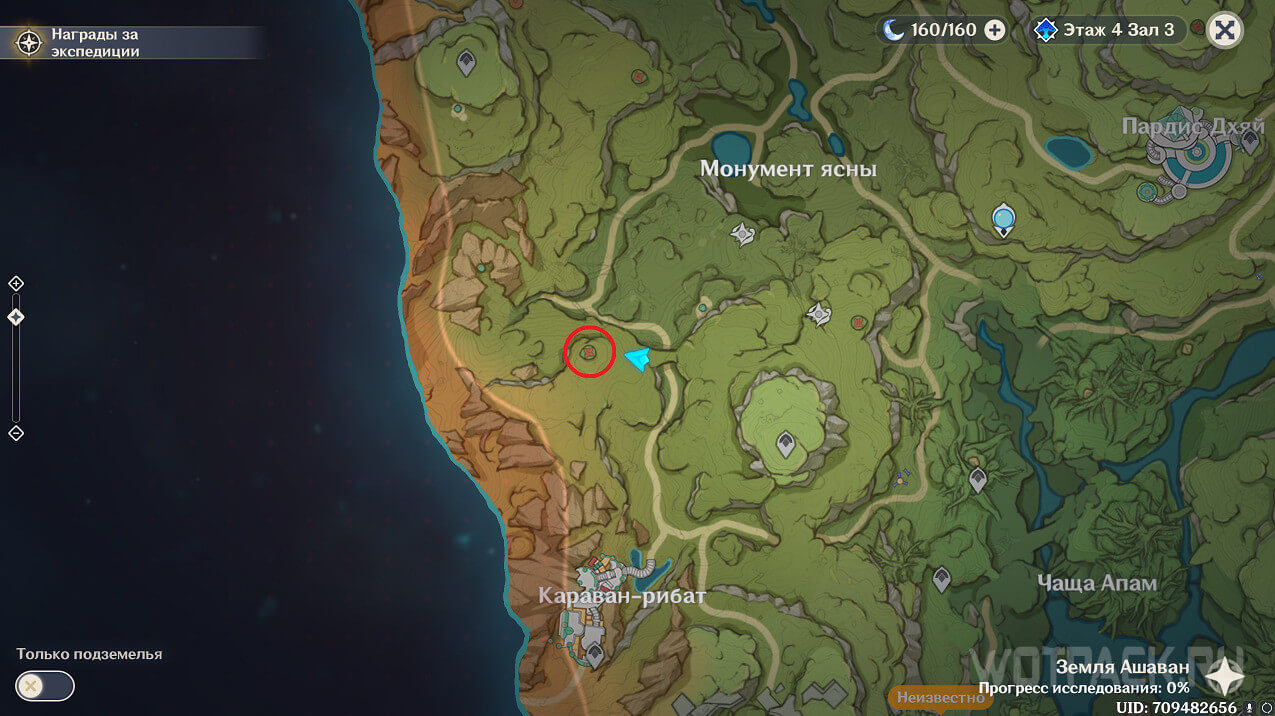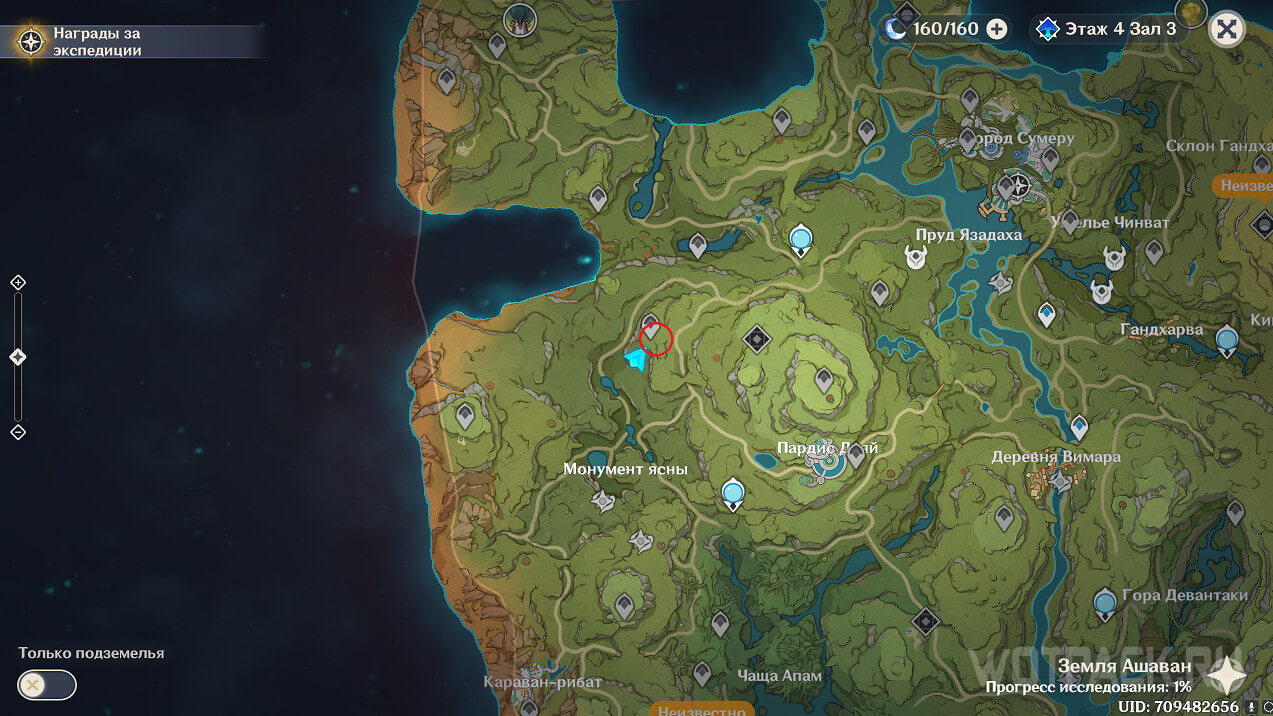 Первая точка расположена на юго-востоке от Гандархвы, на горе рядом с тропинкой. Добраться до нее крайне просто: двигайтесь от Статуи Архонта по четырехлистным символам.