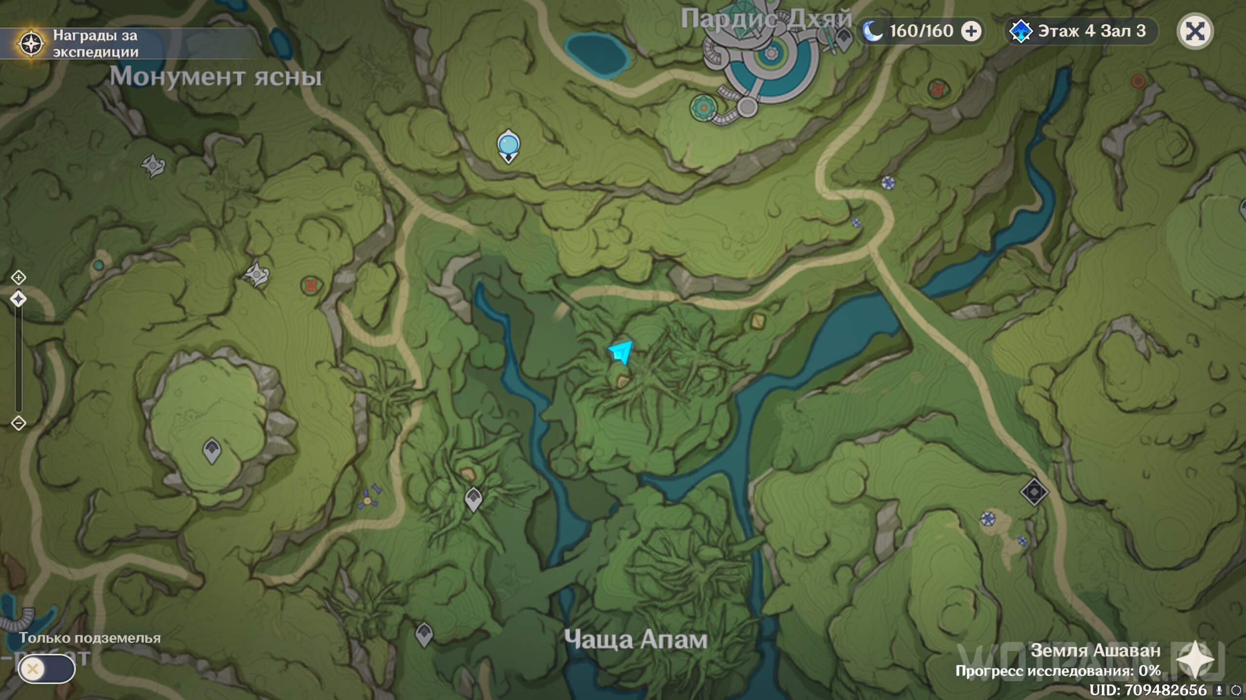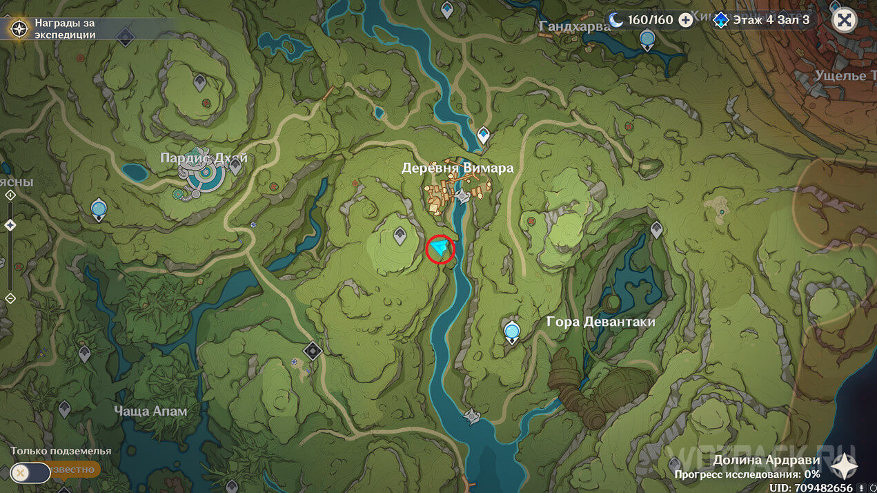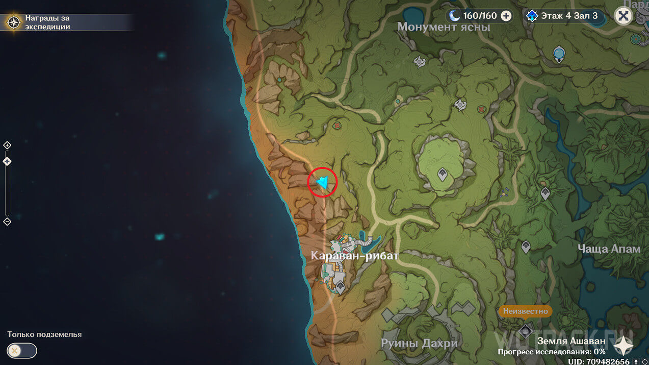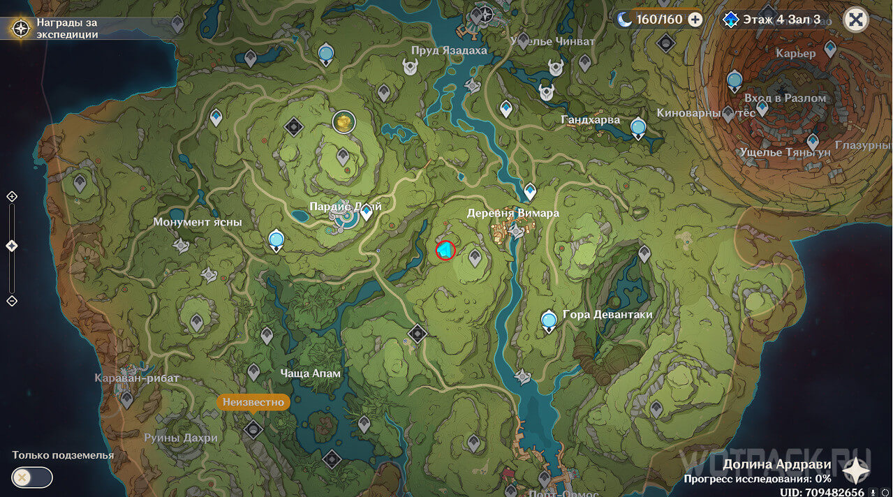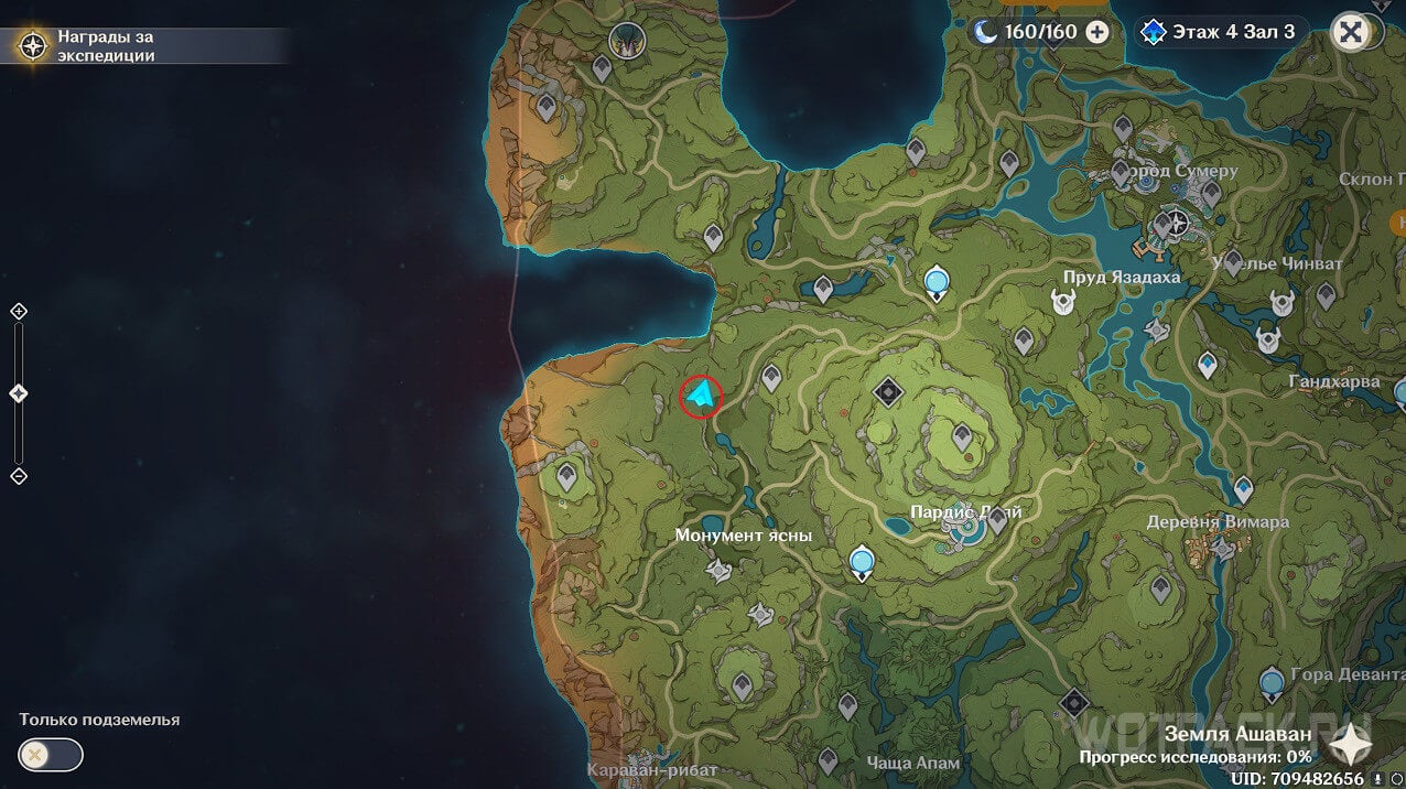 Первая точка расположена на юго-востоке от Гандархвы, на горе рядом с тропинкой. Добраться до нее крайне просто: двигайтесь от Статуи Архонта по четырехлистным символам.