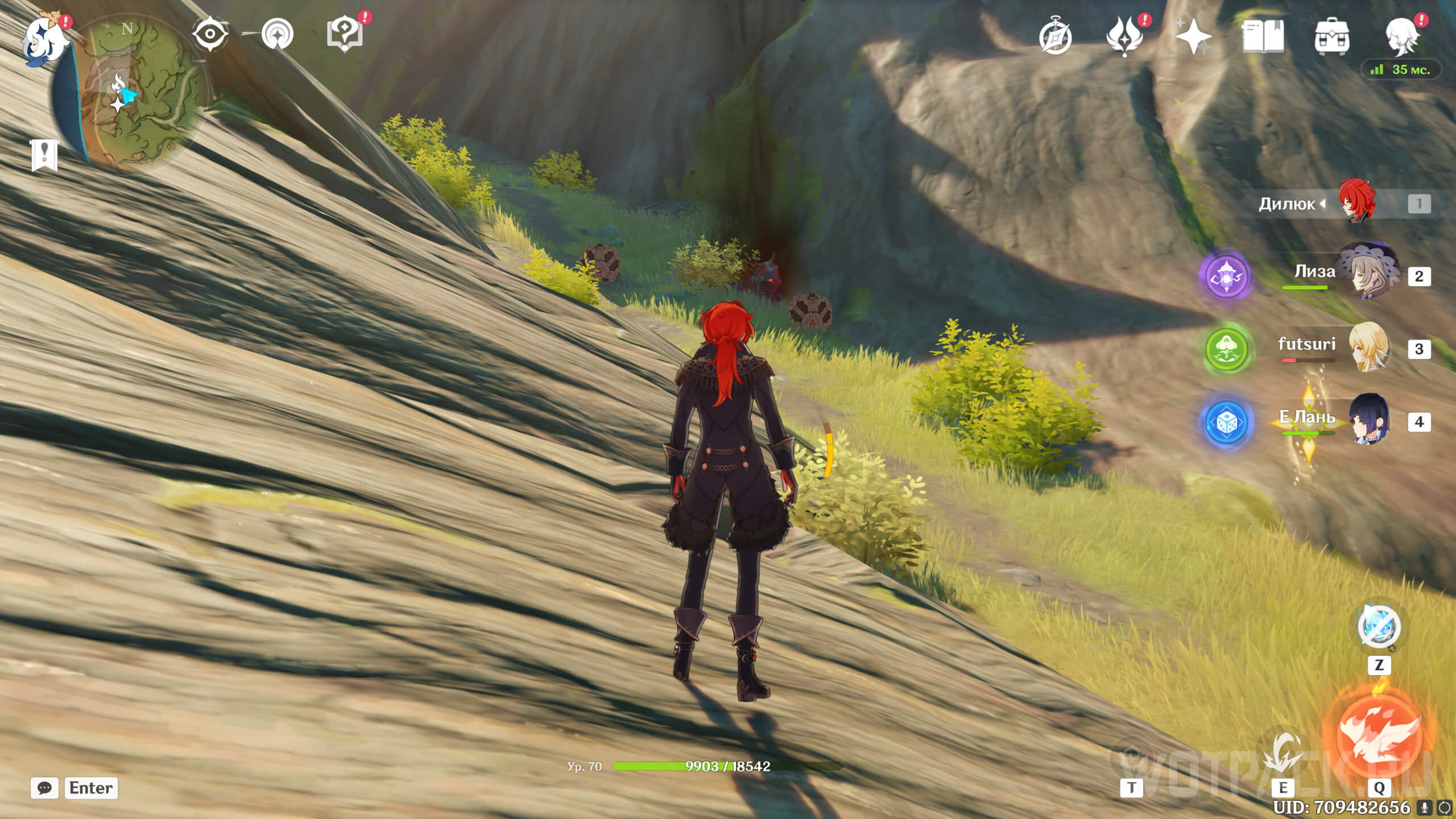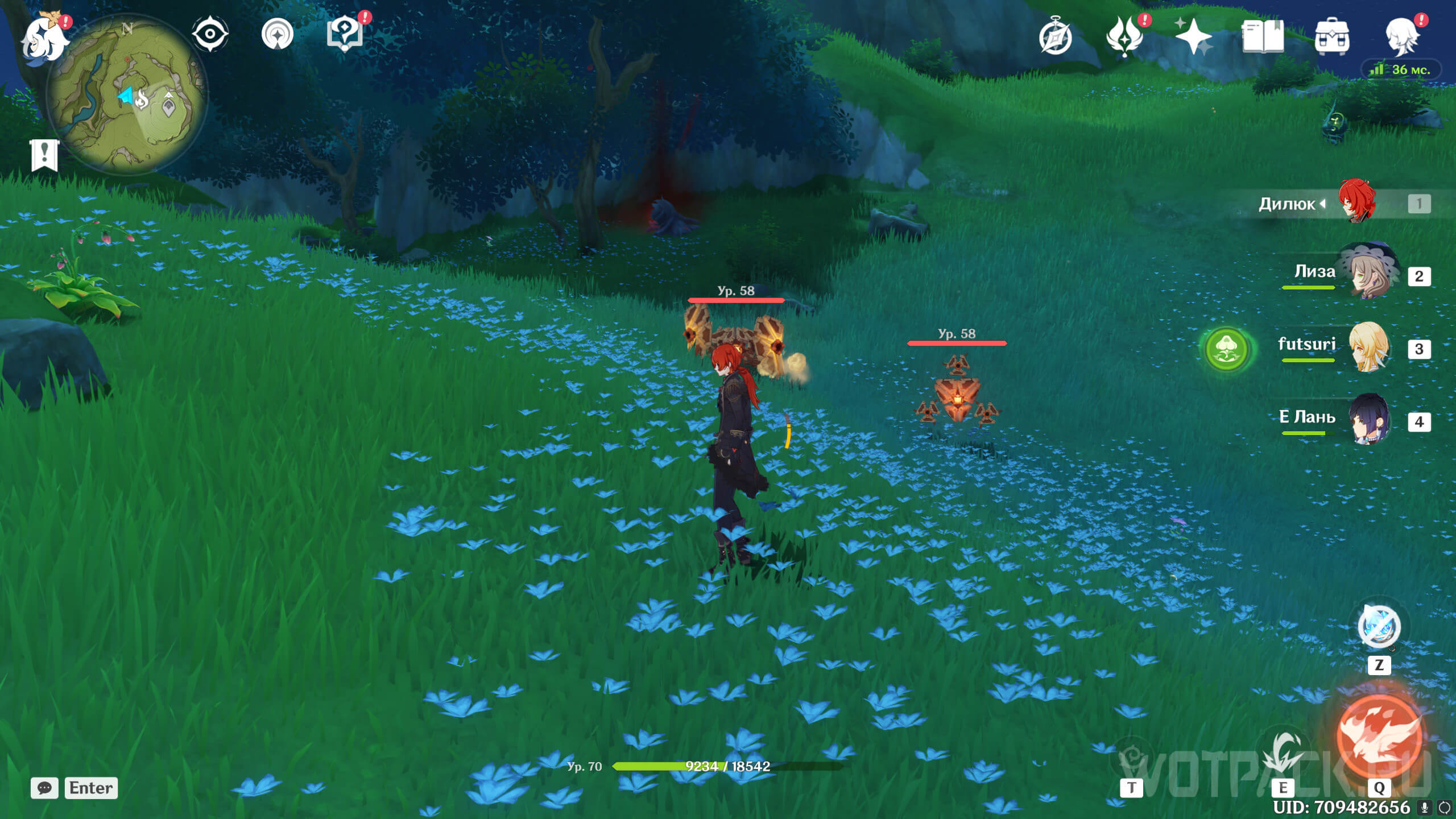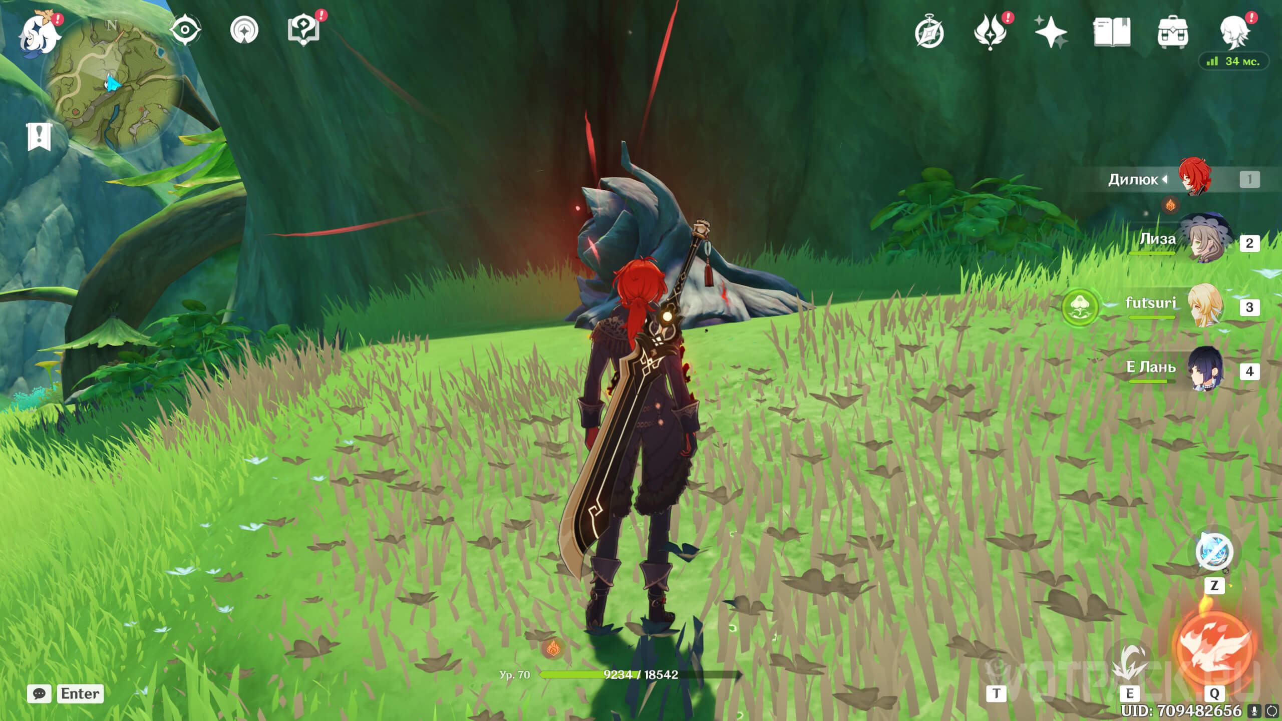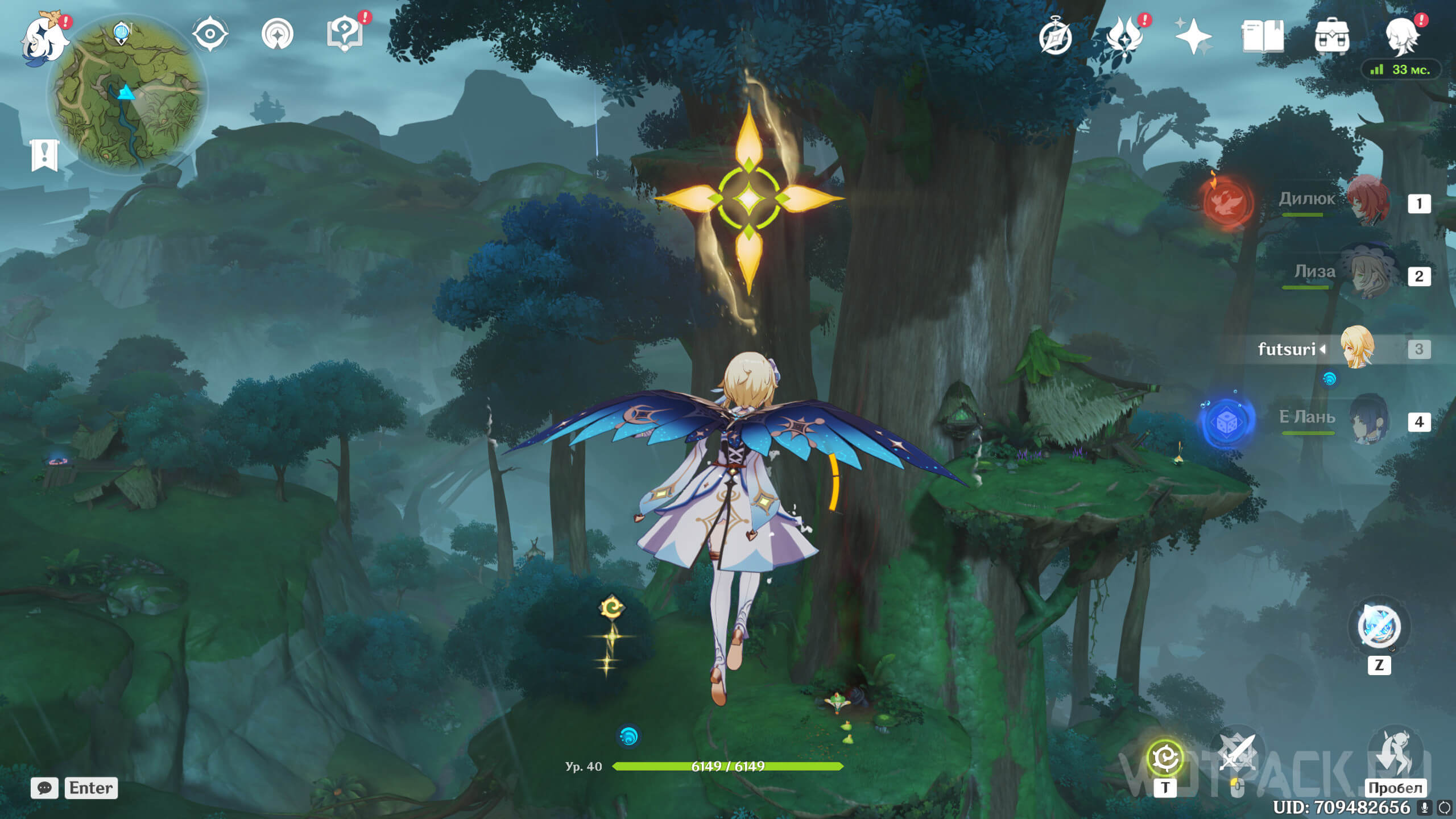 Сначала стоит посетить ту, что ближе. Она расположена на восточном берегу реки, текущей от Деревни Вимара. Перелетите на другую сторону, разберитесь с несколькими хиличурлами (2 обычных и 1 маг бездны) и уничтожьте опухоль Увядания.