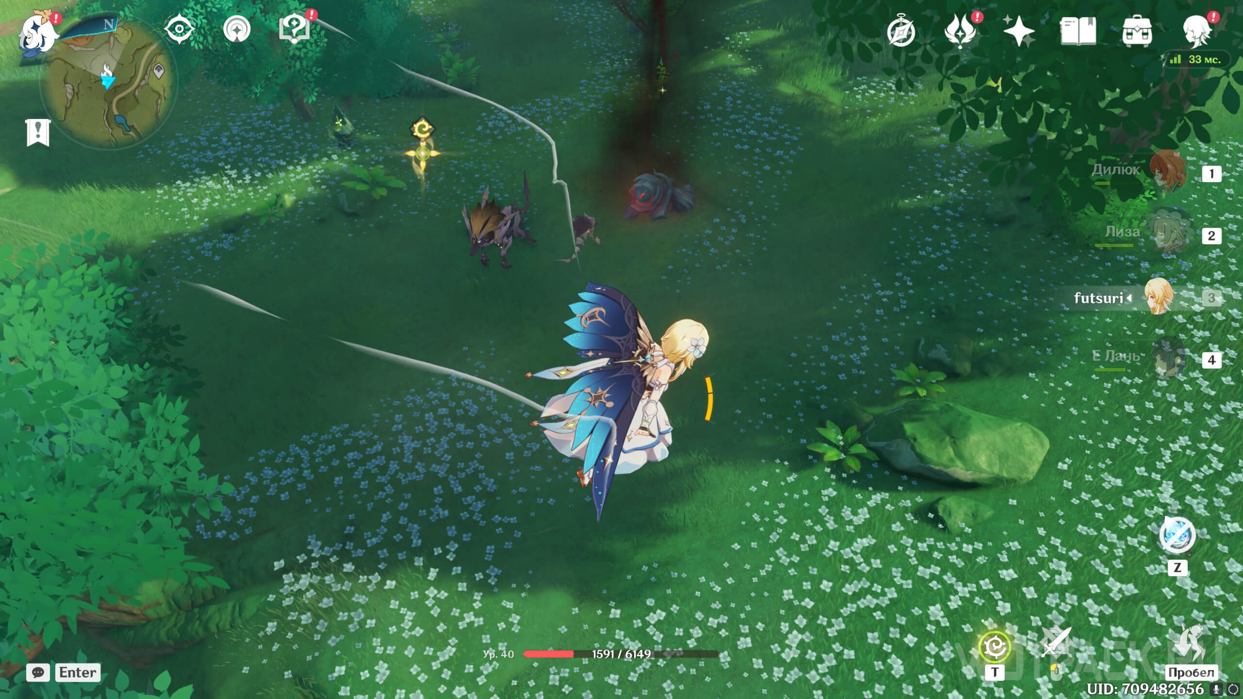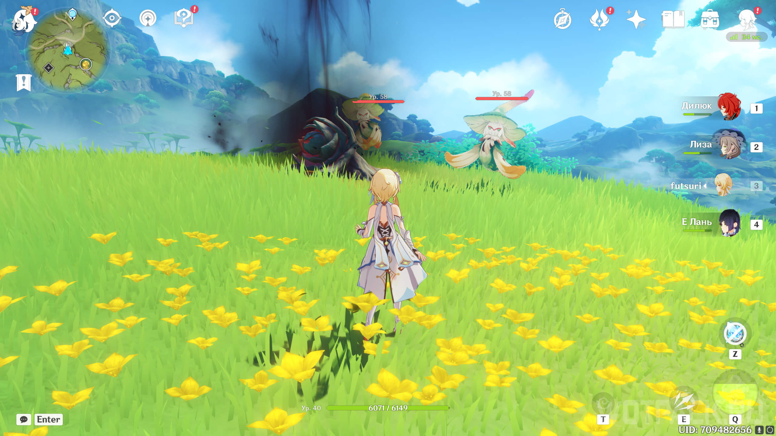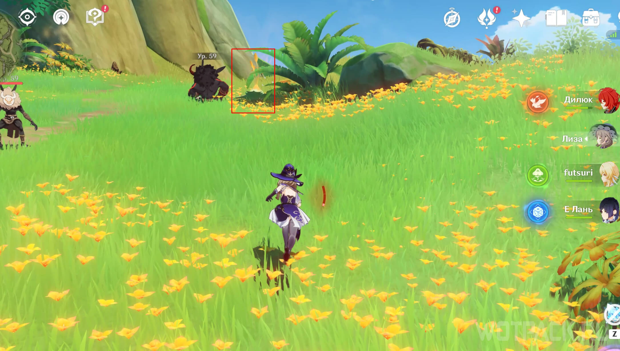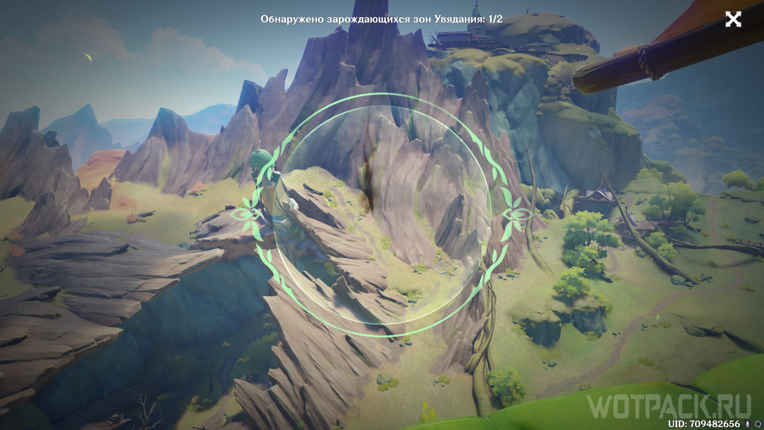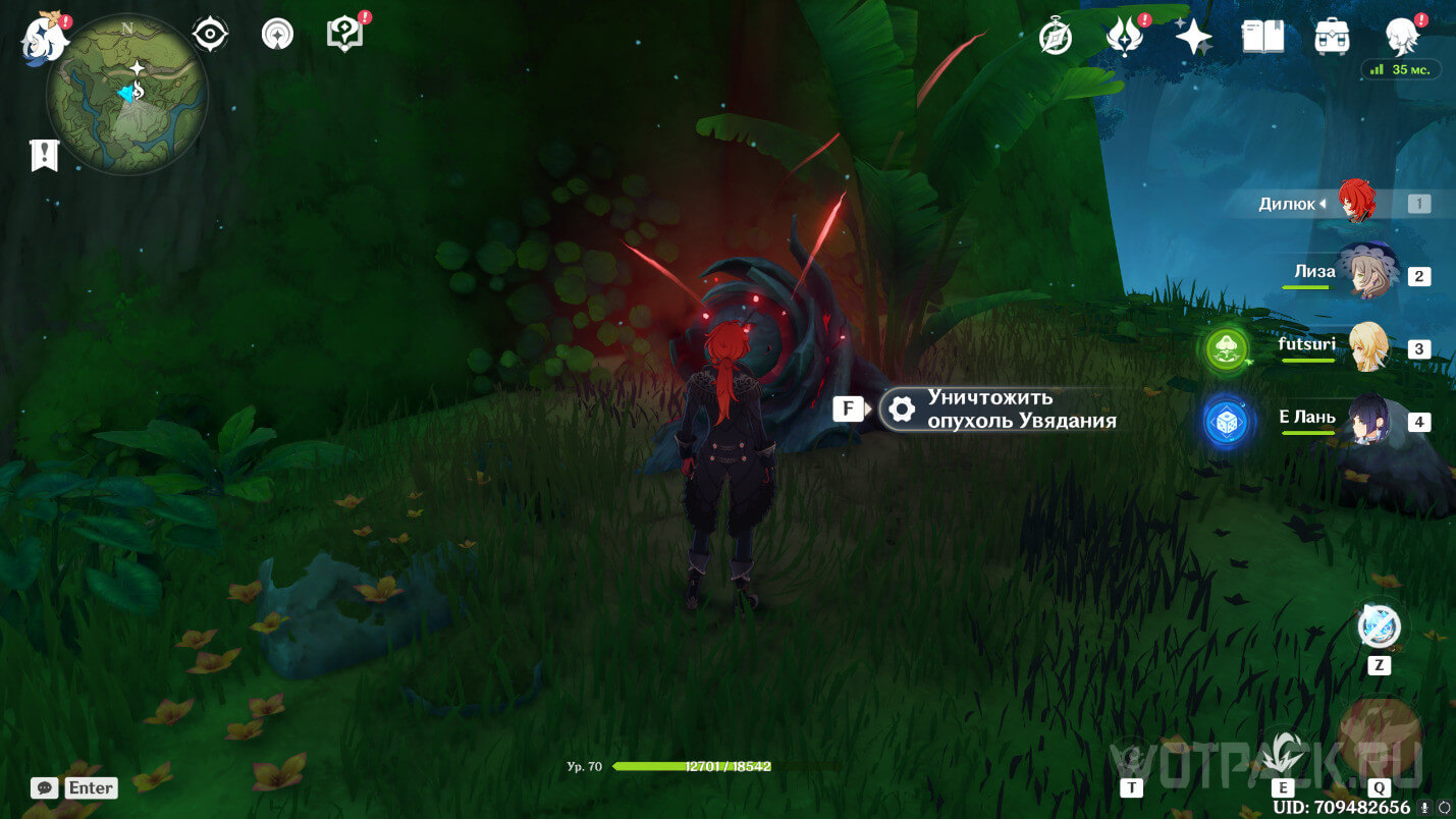 Долетев на юг, разберитесь с хиличурлами, которые охраняют область. После этого уничтожьте опухоль Увядания.