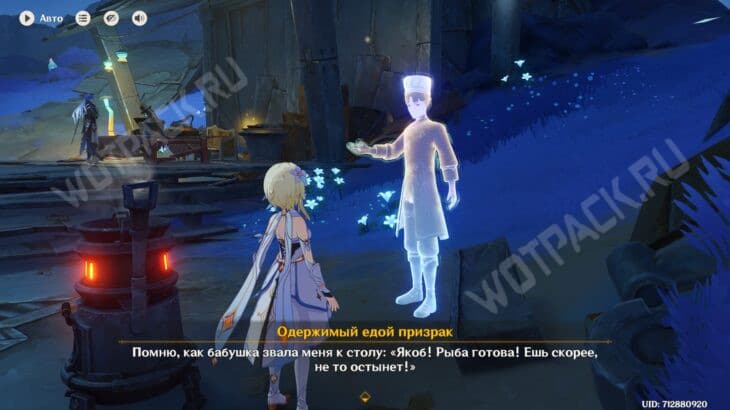 - Ещё раз сделайте любое блюдо, после чего появится призрак повара и заведёт диалог.