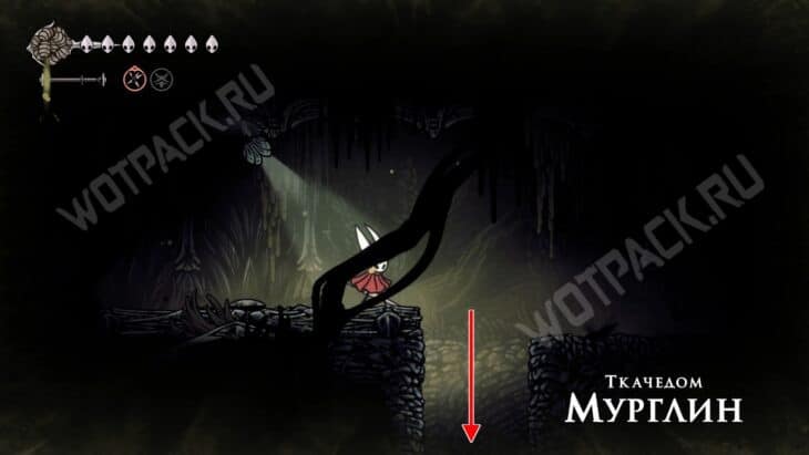 Ткачедом Мурглин очень маленький и в нём почти ничего нет. Через первый провал в полу спуститесь на его нижний уровень, а затем поднимитесь по вертикальному проходу правее.
