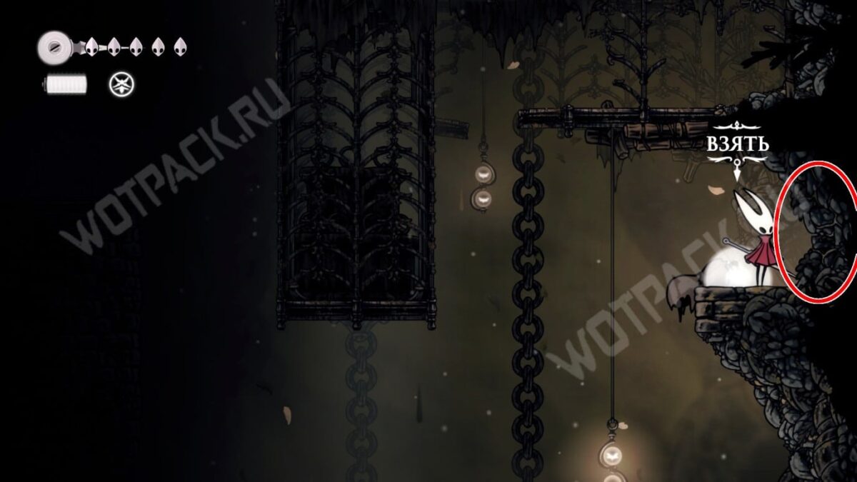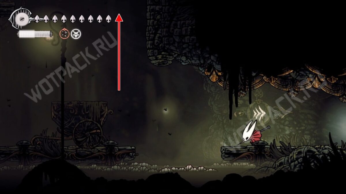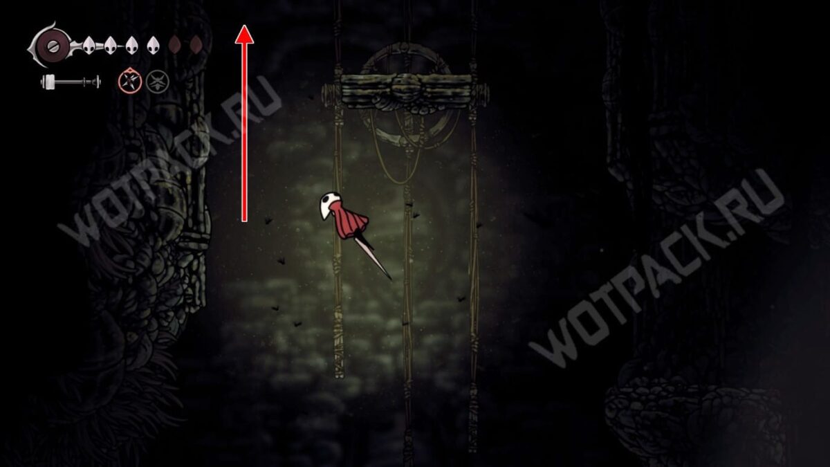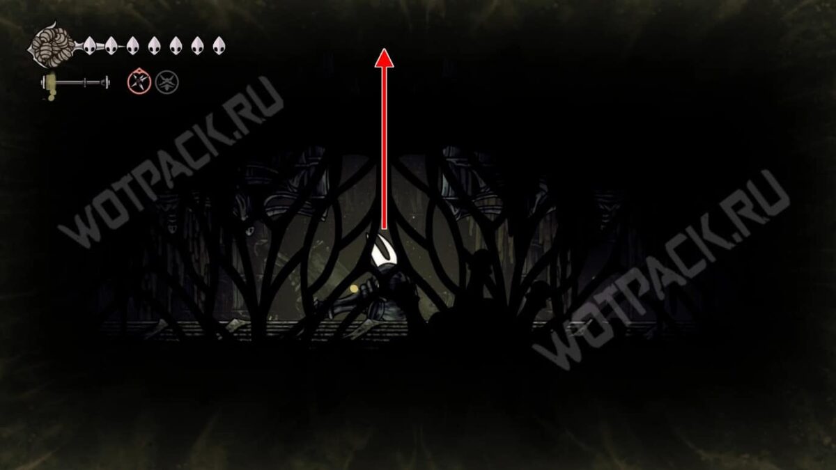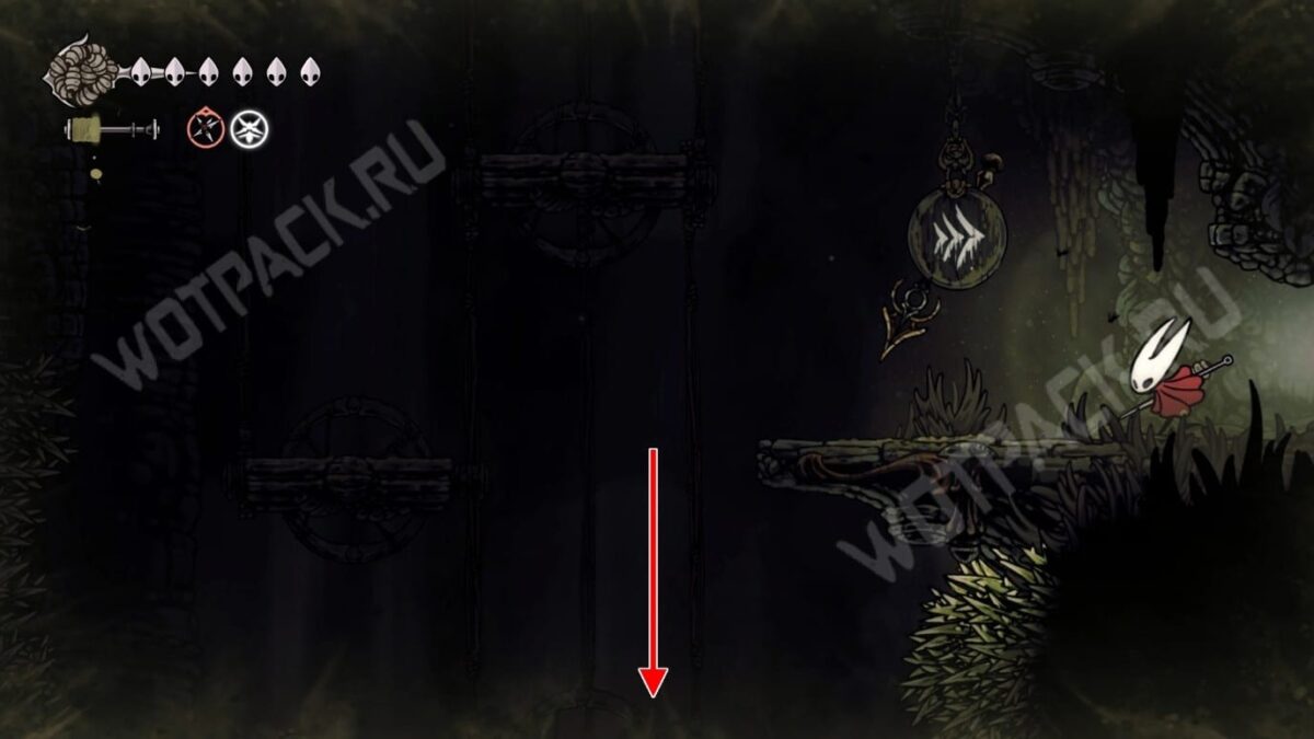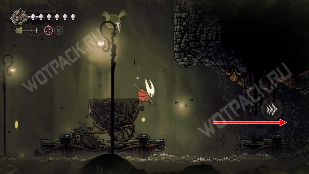 Пробравшись на верхний ярус болота, приблизитесь к финальному испытанию области — опциональному боссу, — но окажетесь слишком далеко от предыдущей точки сохранения. Вот только путешествовать от самого начала биома при проигрыше битвы не придется: в Желчноводье есть секретная лавка за стеной, которую можно найти неподалеку от Желчеграда. Для её обнаружения из комнаты с блохой спрыгните вниз и продолжайте бежать на восток.