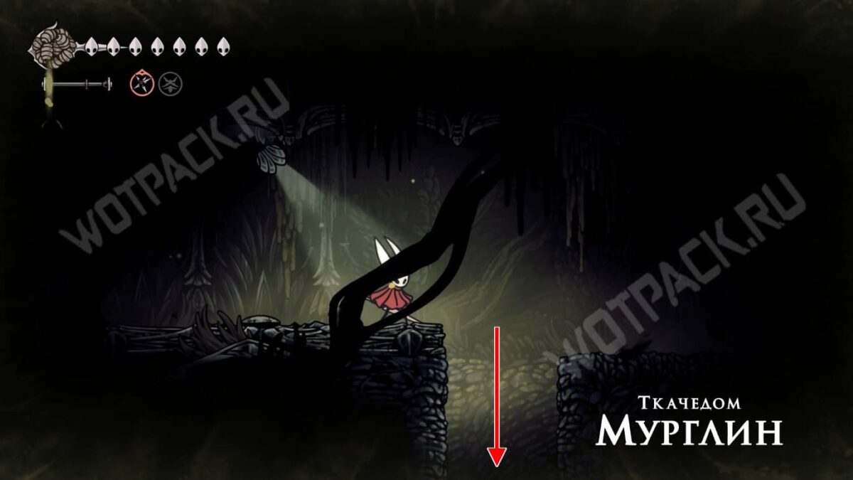 Ткачедом Мурглин очень маленький и в нём почти ничего нет. Через первый провал в полу спуститесь на его нижний уровень, а затем поднимитесь по вертикальному проходу правее.