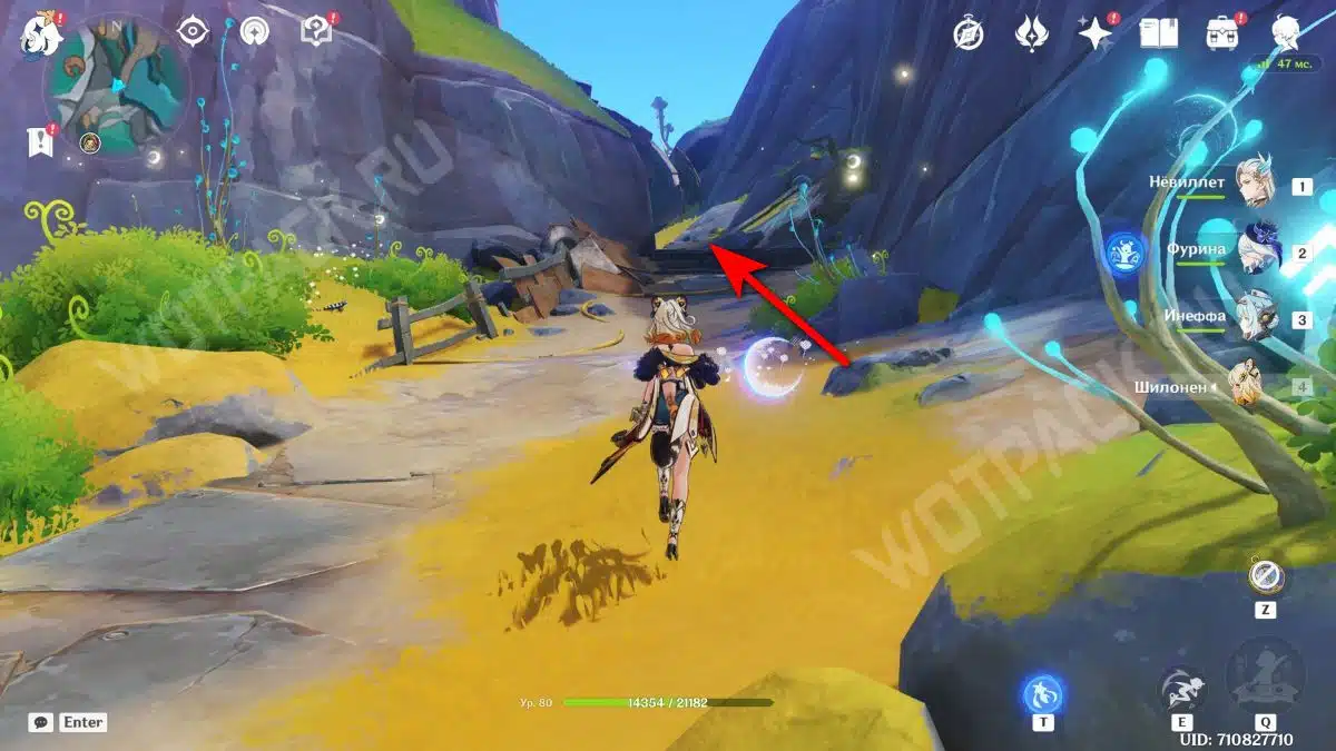 Войдите в него и двигайтесь по дороге прямо, пока не дойдете до телепорта и арены с противником.