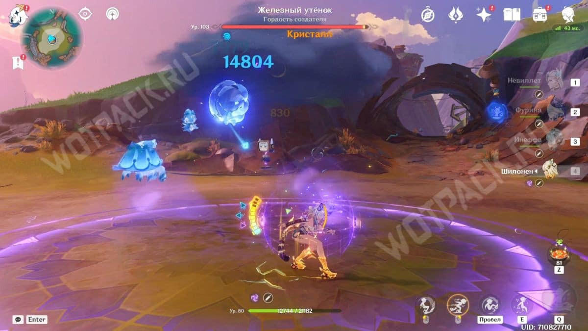 Персонаж, который наносит наибольшее количество дамага, в идеале должен обладать Электро элементом для быстрого разрушения уткодронов и самого противника Гордость создателя. Также подойдут Гидро герои, способные накладывать достаточно статуса для Заряжен или ЛЗ.