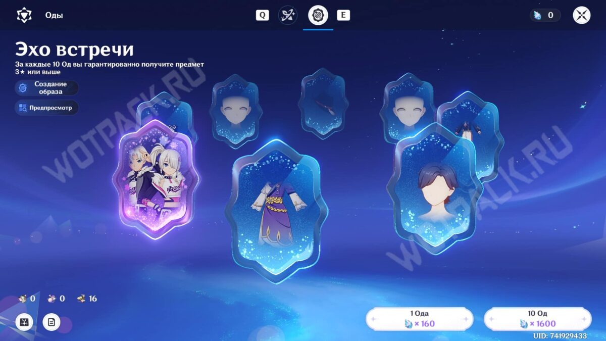 Использовать накопленные драгоценные камни можно только в стандартной Оде «Эхо встречи» — постоянном баннере с эпическими нарядами и украшениями различной редкости. На одну попытку уйдет 160 единиц ресурса, а на десять — 1600.