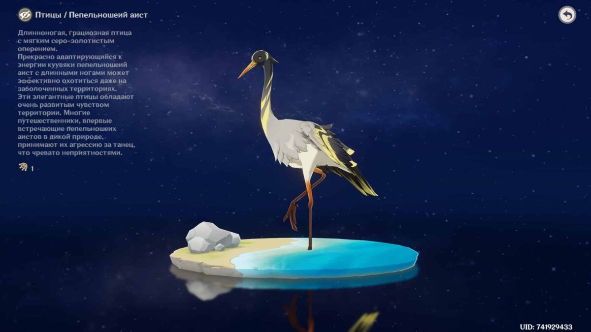 Основной представитель летающей фауны Инадзумы. Почти все фиолетовые ибисы обитают на трех островах Электро региона из шести: