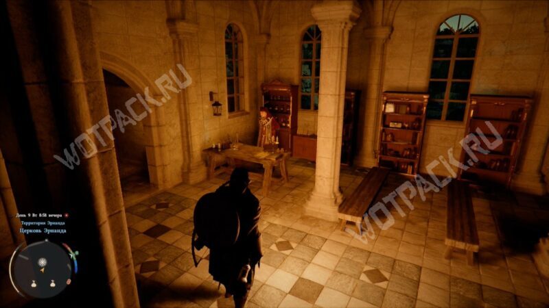 Если перед посещением лечебницы возвращались в главный город, загляните в местную церковь и поговорите с Альфредом.