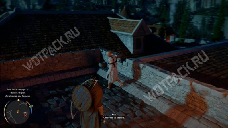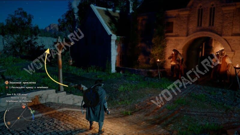 Выполнить цель «Найдите Серогривого в лечебнице св. Гальсия» можно только ночью. Днём не увидите сцену стычки между смотрителями и пациентами в коридоре.