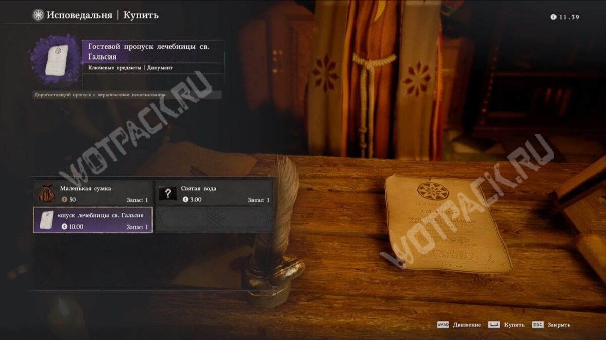 В ассортименте его товаров найдёте маленькую сумку (бронзовые монеты ×50), которая расширяет «Инвентарь», и гостевой пропуск (серебряные монеты ×10). Примените этот ключевой предмет, чтобы попасть в локацию в роли обычного посетителя.