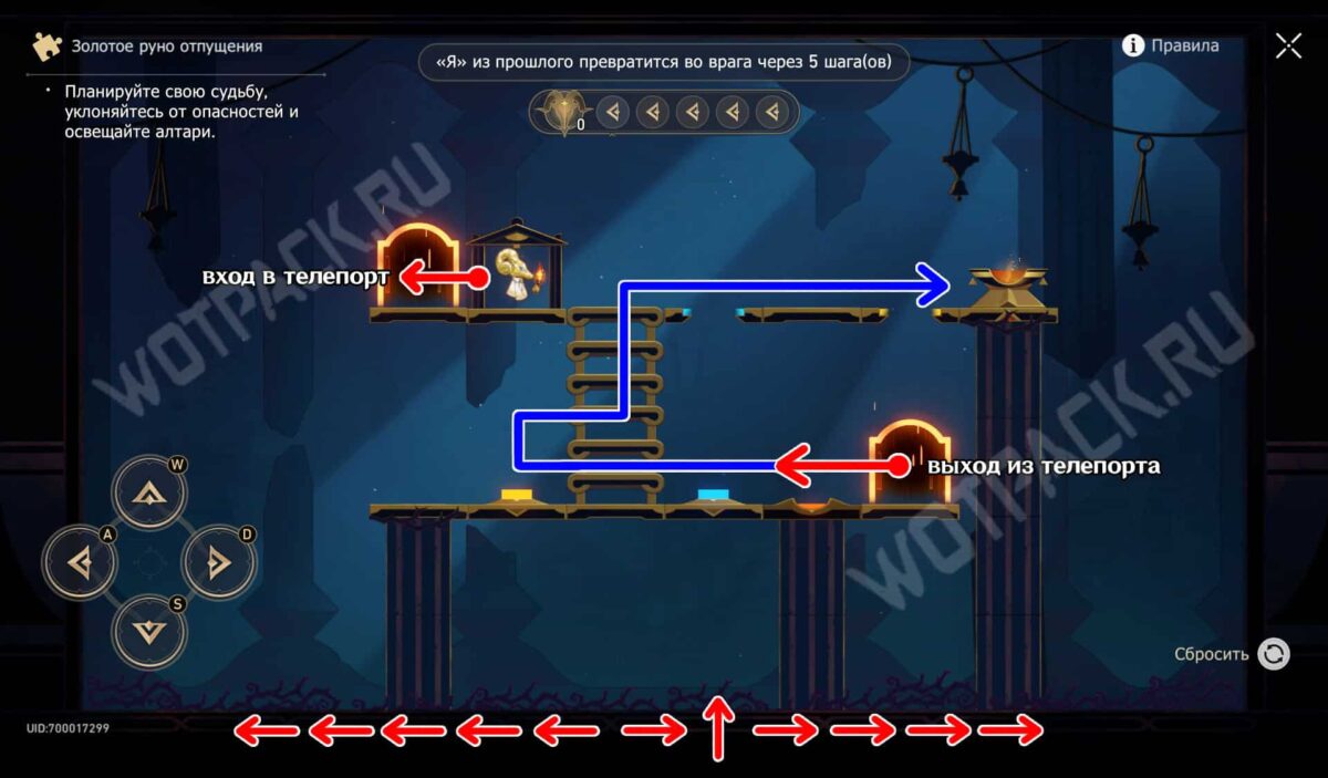 Спрыгните с лестницы и зайдите в правый телепорт. После выхода из левого портала идите к алтарю, по пути использовав оба спуска.