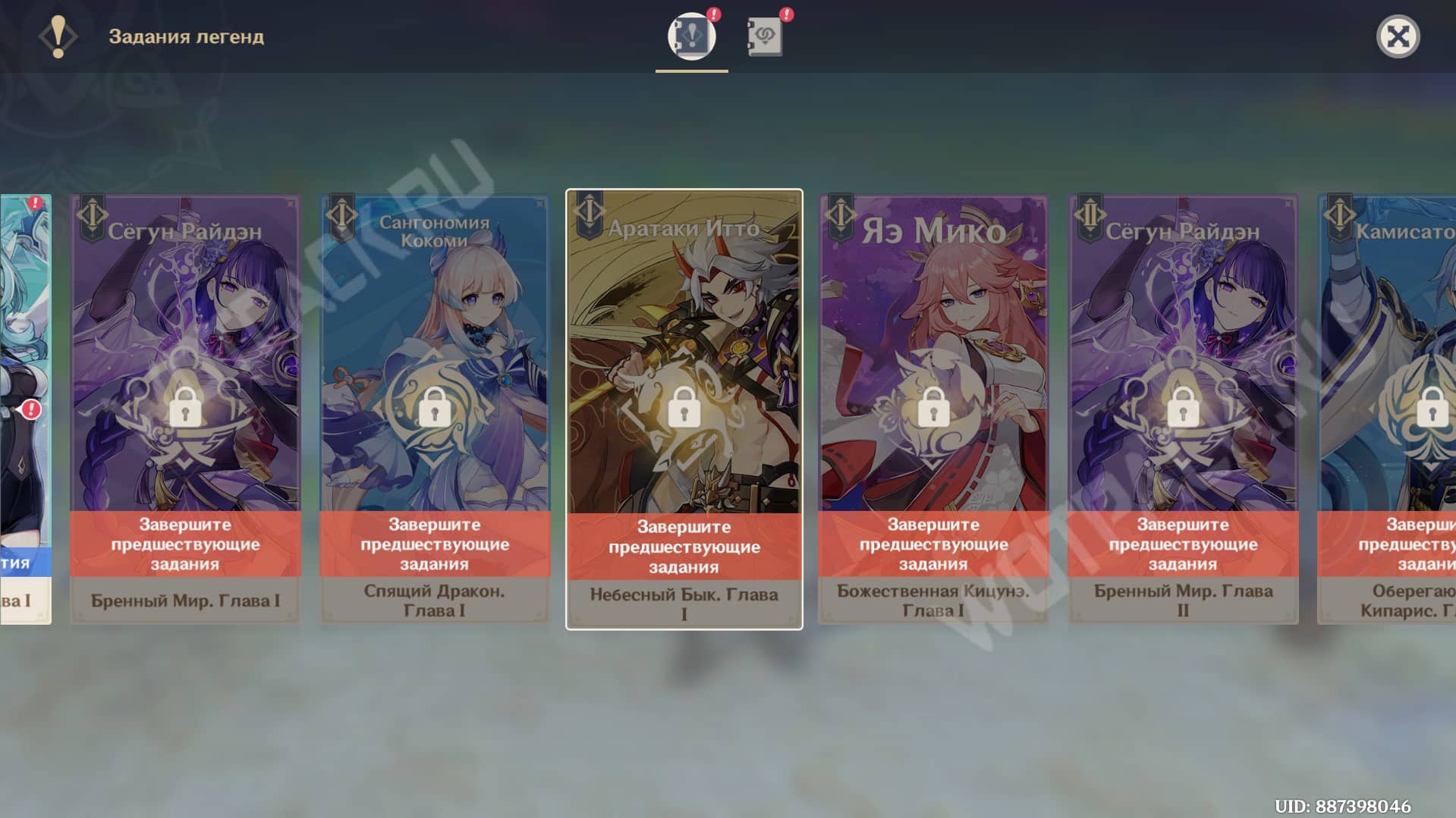 Откройте задания легенд, выберите обложку с Итто и откройте квест, чтобы он появился в текущих миссиях.